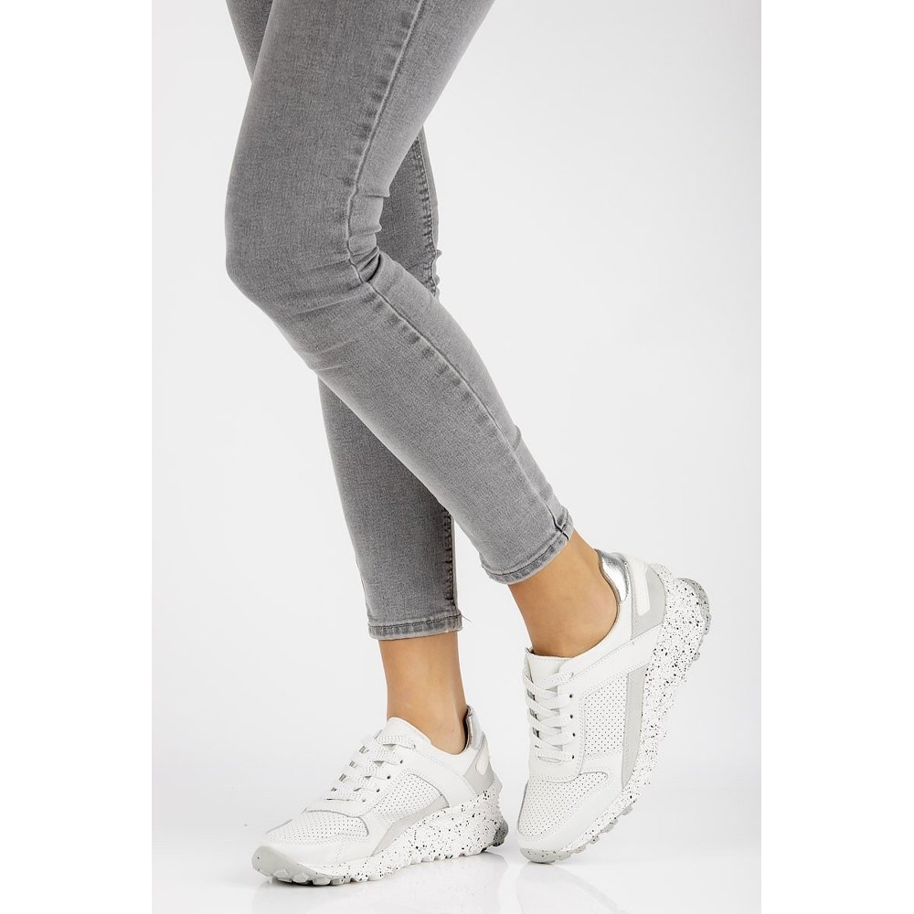 Nous vous présentons les baskets en cuir Filippo DP2008/21 dans une couleur blanche classique, qui s'intégreront parfaitement au style quotidien de chaque femme moderne. Ces chaussures de sport basses présentent un design simple et élégant, sans motifs, ce qui les rend polyvalentes et faciles à combiner avec une variété de vêtements.