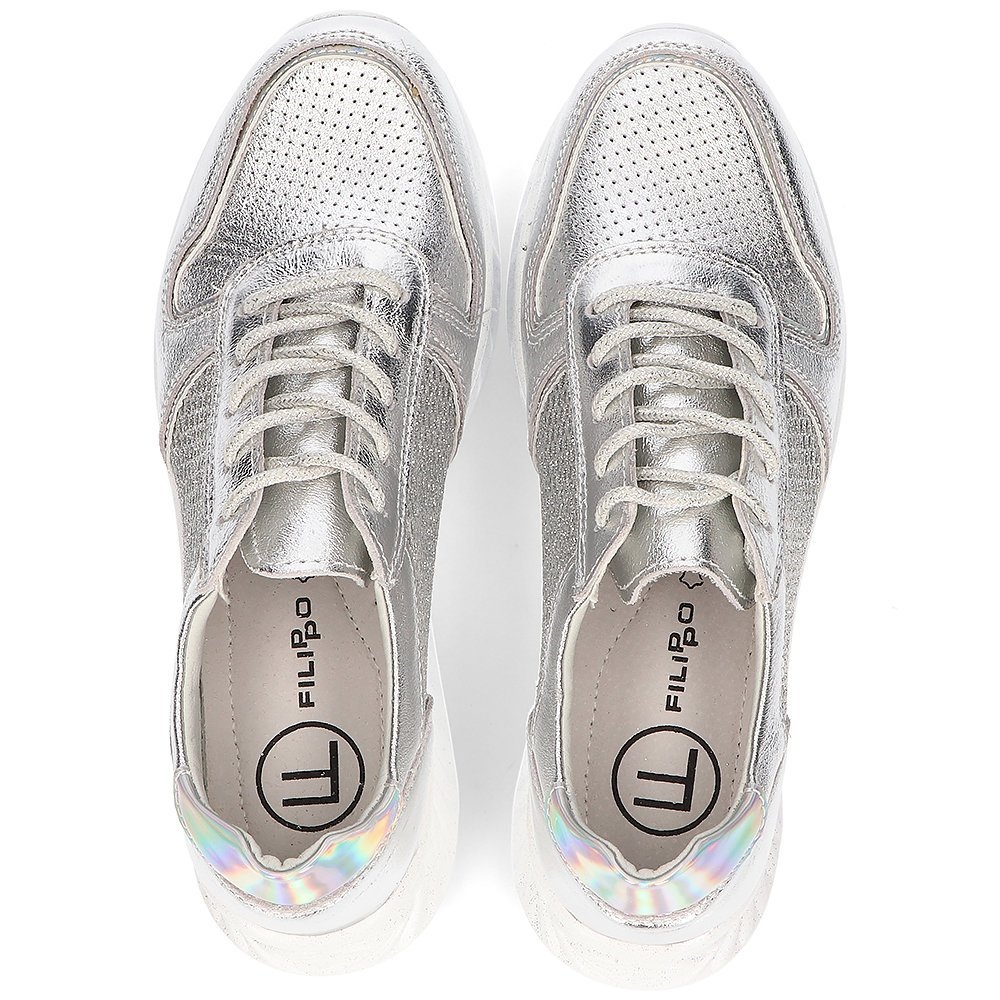 Découvrez le style unique et le confort de port grâce aux baskets en cuir Filippo, modèle DP2011/21 Si, argent. Ces chaussures pour femmes uniques allient un design moderne et une finition de haute qualité. Fabriqués en cuir naturel, ils offrent une excellente ventilation et un excellent confort même pendant les longues journées.