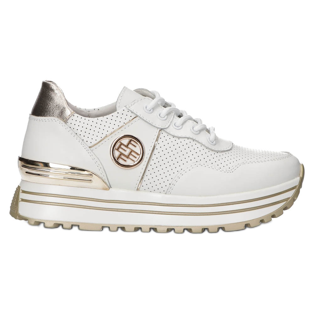 Les baskets en cuir Filippo DP3538/22 WH blanches sont le choix parfait pour les personnes qui recherchent des chaussures élégantes et confortables pour le printemps et l'été. Ces chaussures de sport se distinguent par une combinaison élégante de cuir naturel blanc avec de luxueux accents dorés, ce qui en fait un complément parfait à différents styles.