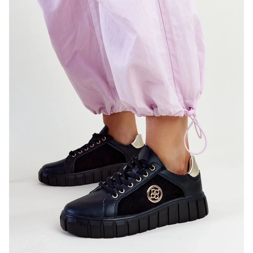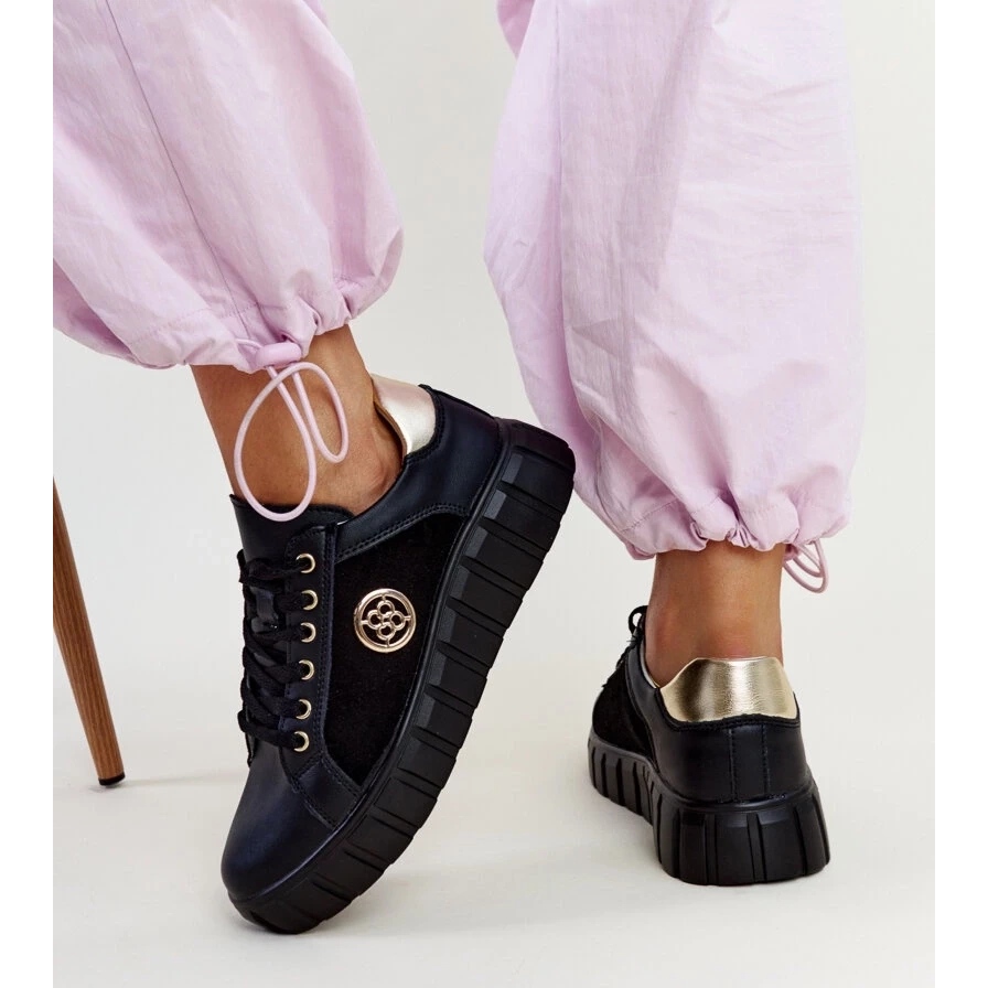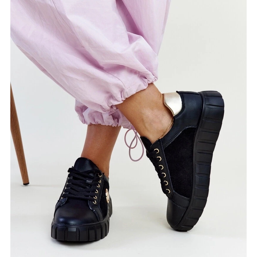 Détails: Baskets en cuir noir à semelle massive Viera le noir