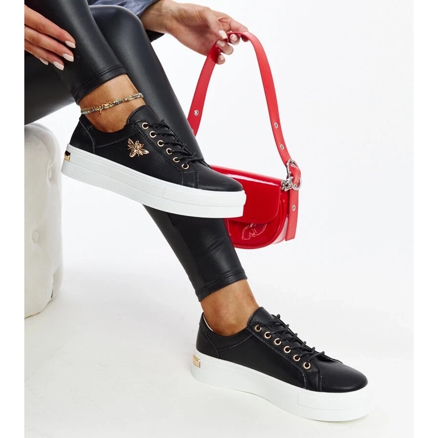 Détails: Baskets en cuir noir sur la semelle épaisse de Mikka