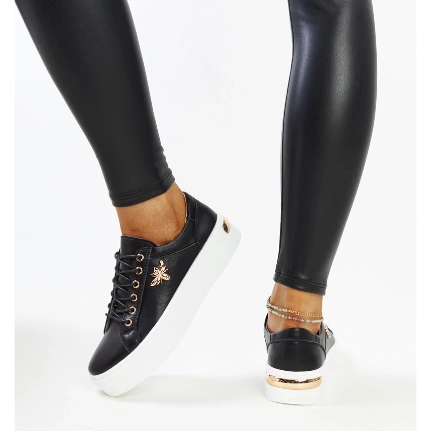 Détails: Baskets en cuir noir sur la semelle épaisse de Mikka le noir