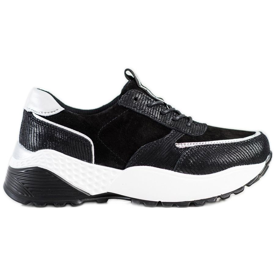 Non seulement l'excellente qualité de fabrication, mais aussi le design extraordinaire font des baskets en cuir noir VINCEZA un incontournable pour toute femme moderne. Parfait pour toute occasion où le confort rencontre la mode. Confortables, élégantes et polyvalentes, ces chaussures sont un choix que vous ne regretterez pas !