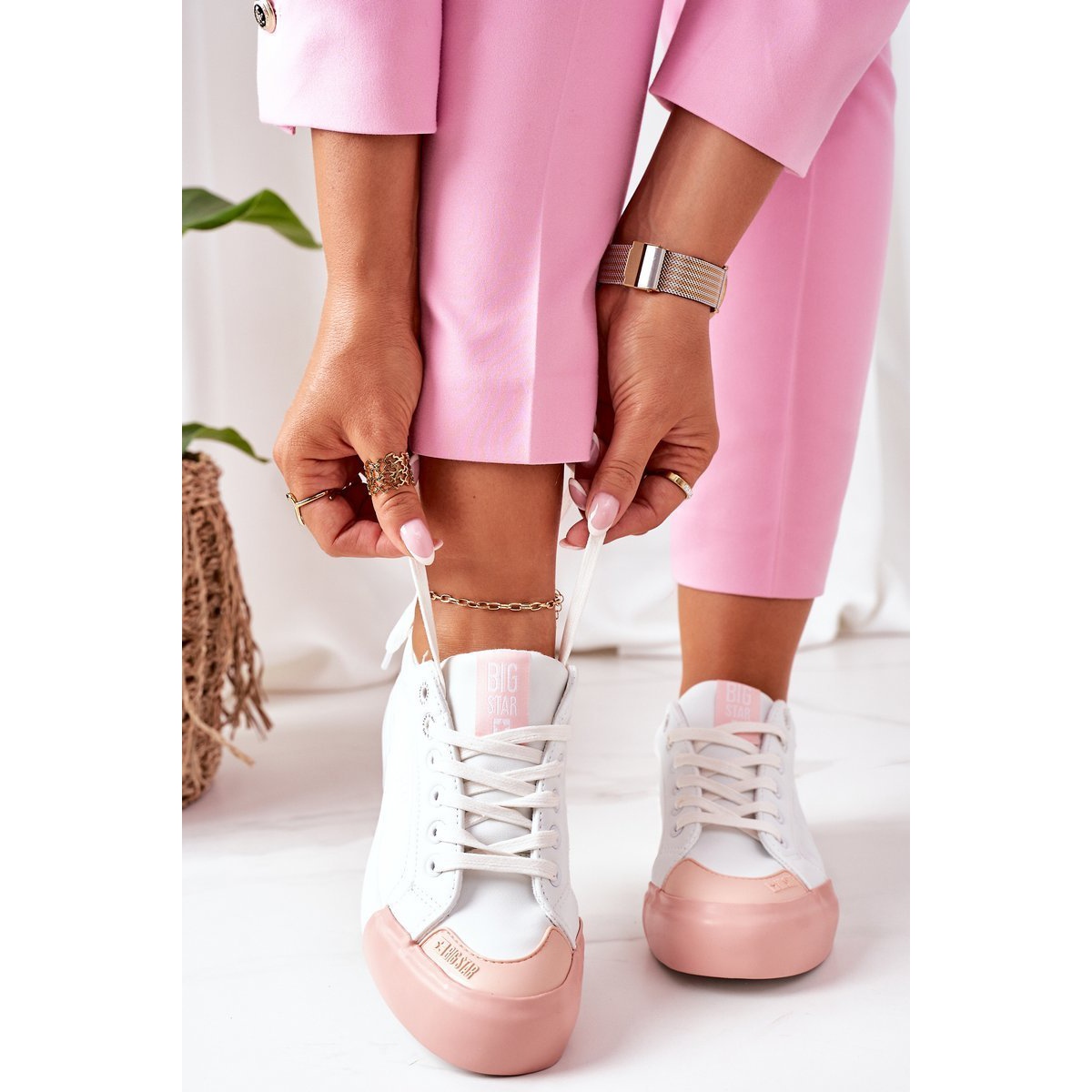 Détails: Baskets en cuir pour femmes Big Star II274027 Blanc blanche rose