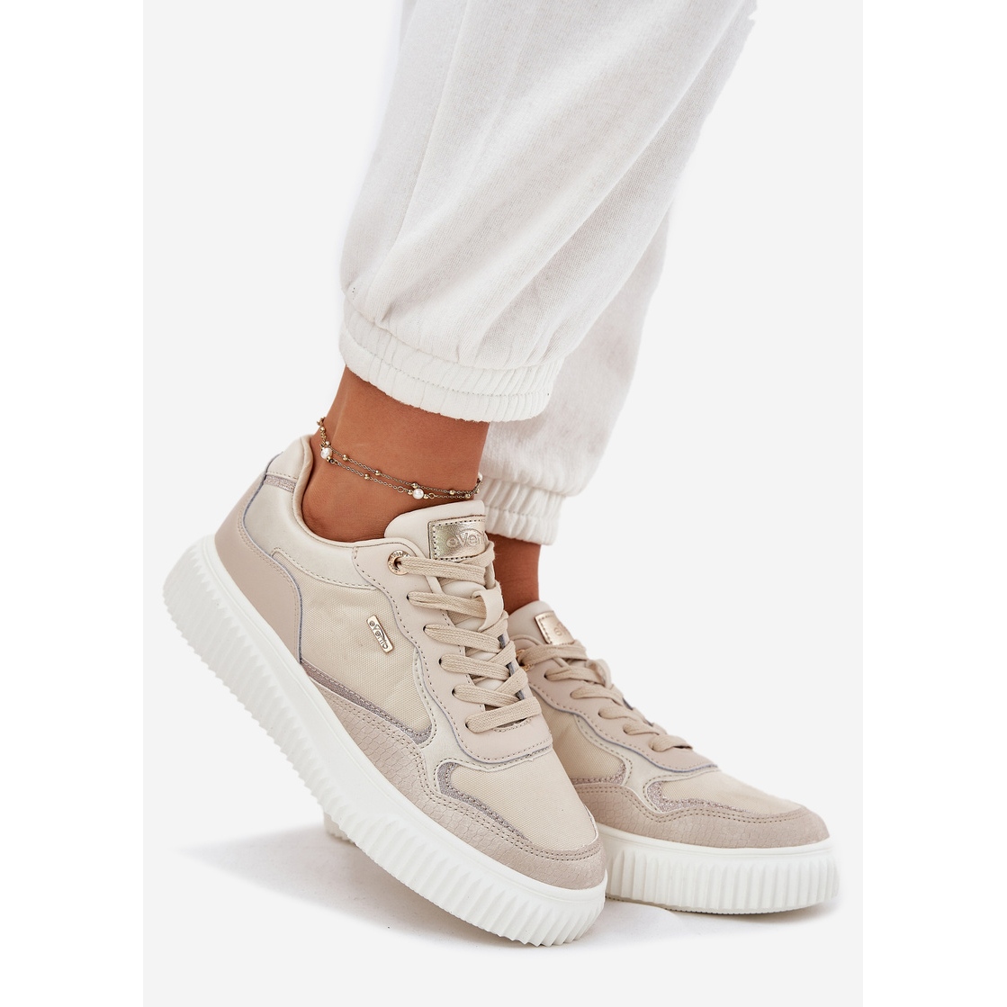 Découvrez le style et le confort uniques offerts par les baskets pour femmes sur la plate-forme beige de Evento. Ces chaussures de sport à la mode sont en cuir naturel de haute qualité et en matériau textile, qui garantit leur durabilité et leur confort de port.