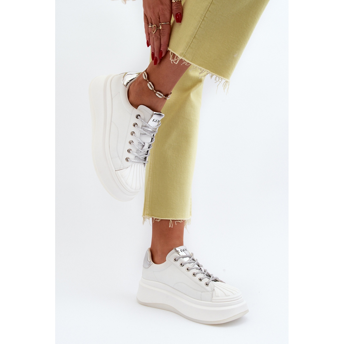 Détails: Baskets en cuir pour femmes sur la plateforme GOE NN2N4033 blanc blanche