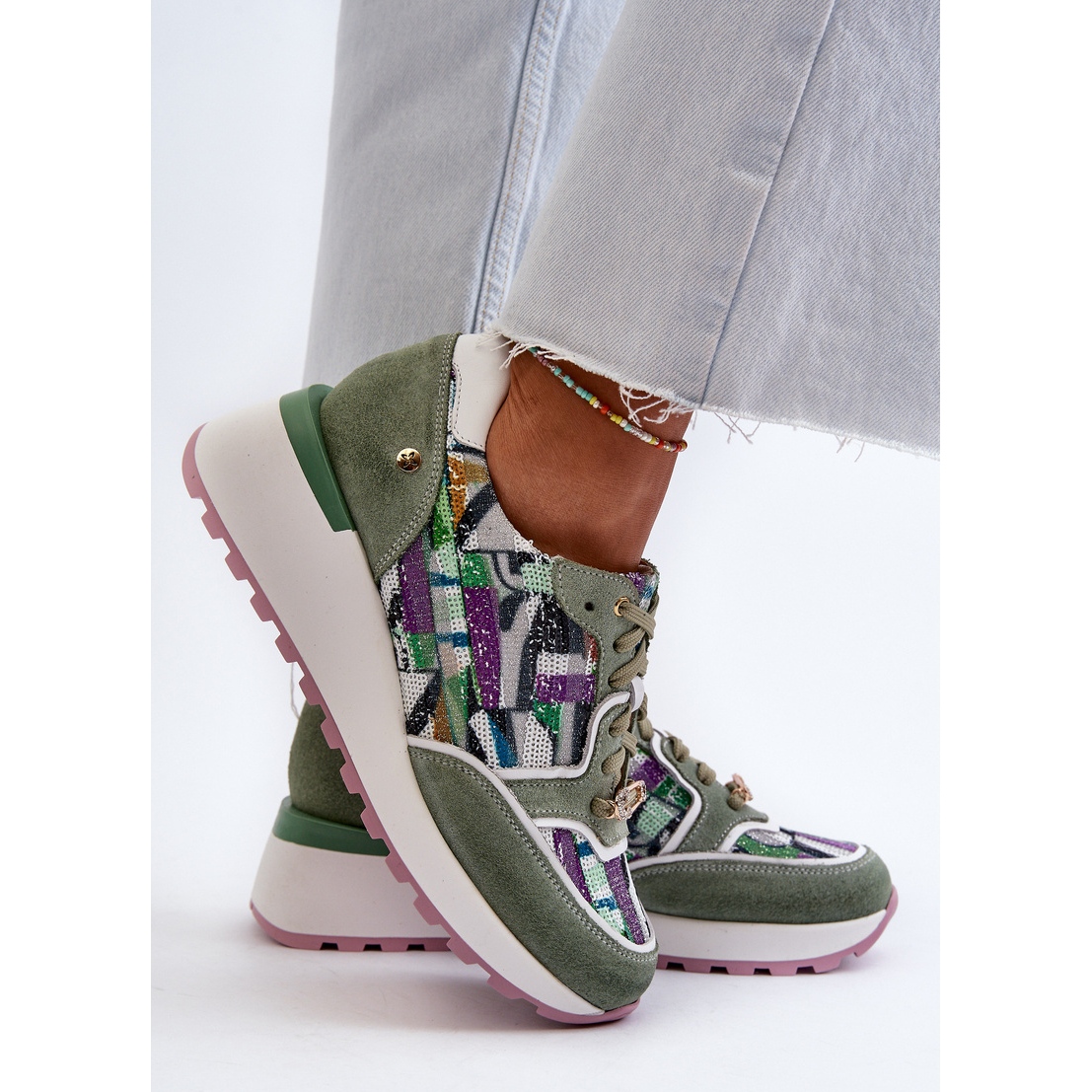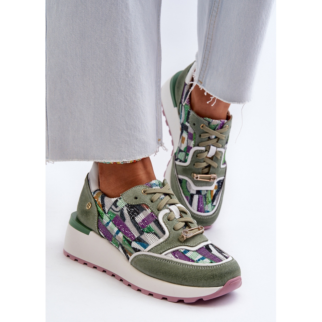 N'oubliez pas de vérifier le tableau des tailles lorsque vous choisissez de profiter de l'ajustement parfait! Ces baskets de mode dans la couleur du céladon avec une semelle rose sont un incontournable dans la garde-robe de chaque femme. Grâce à eux, chaque jour deviendra élégant et confortable!