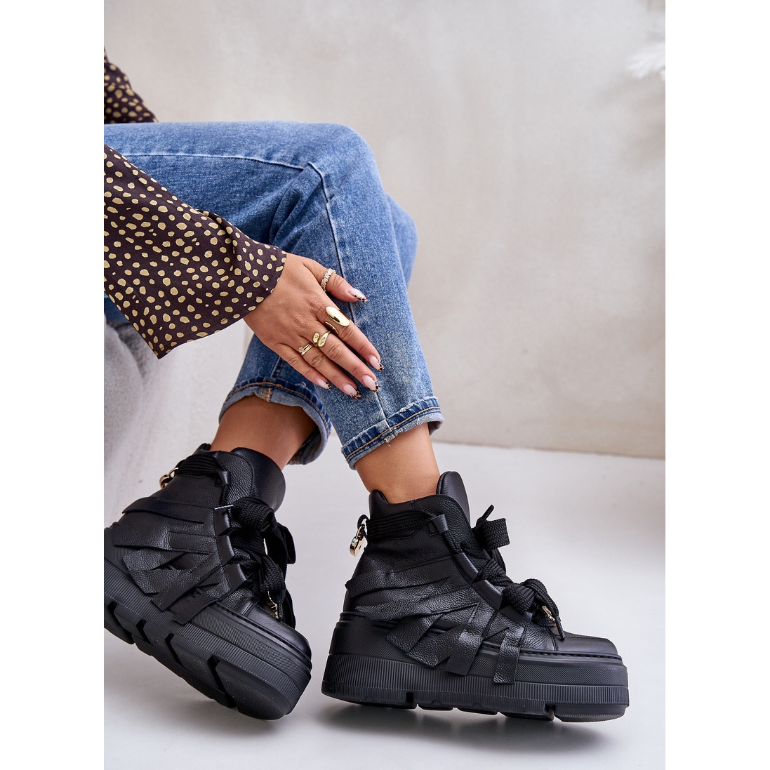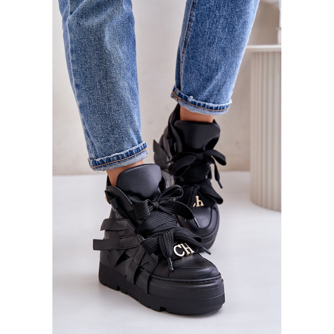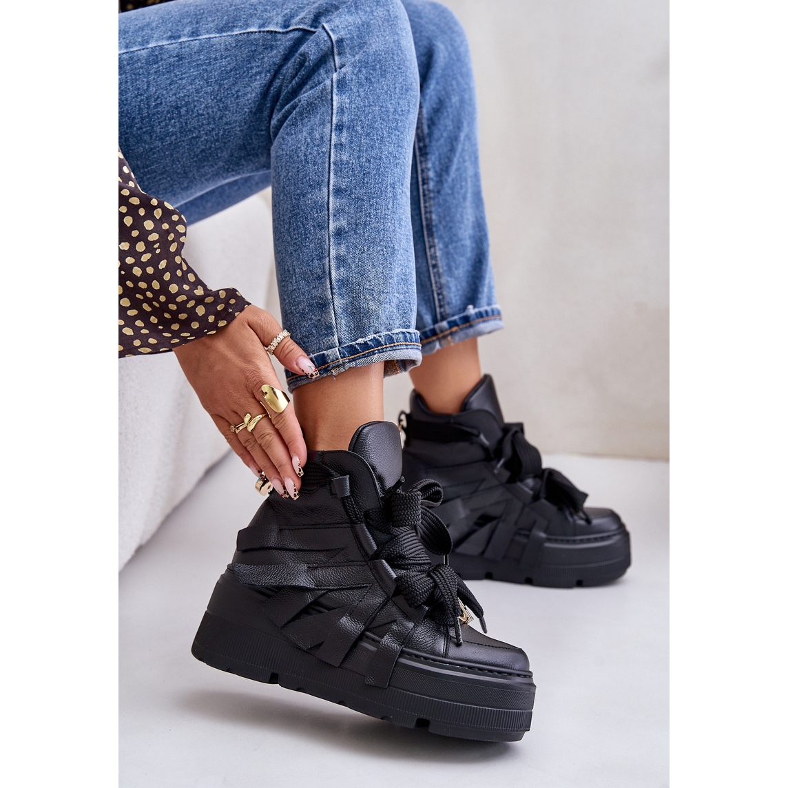 Baskets en cuir pour femmes sur une plateforme massive CheBello 4561 Noir