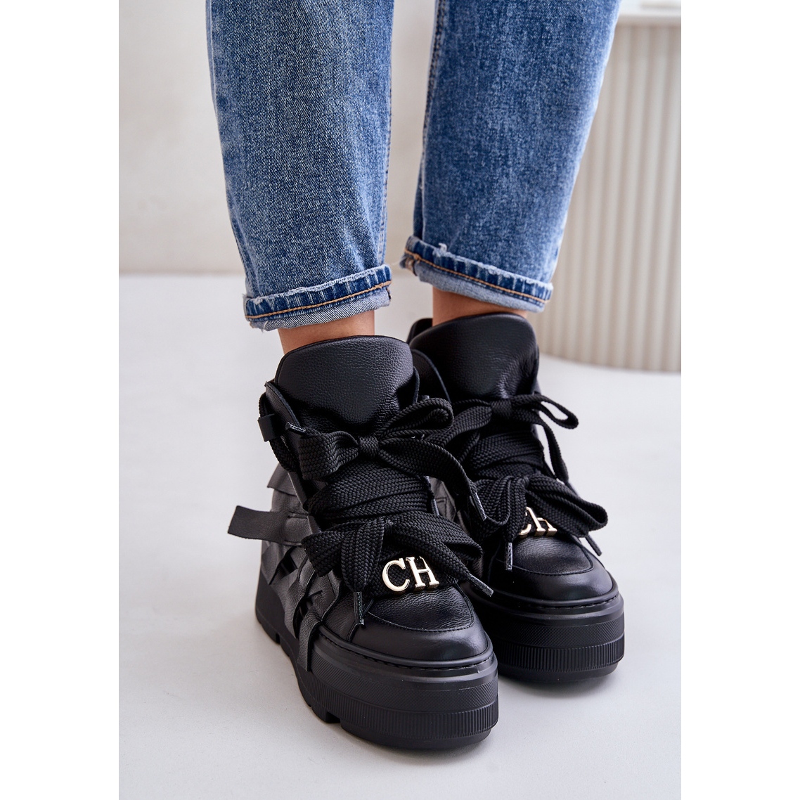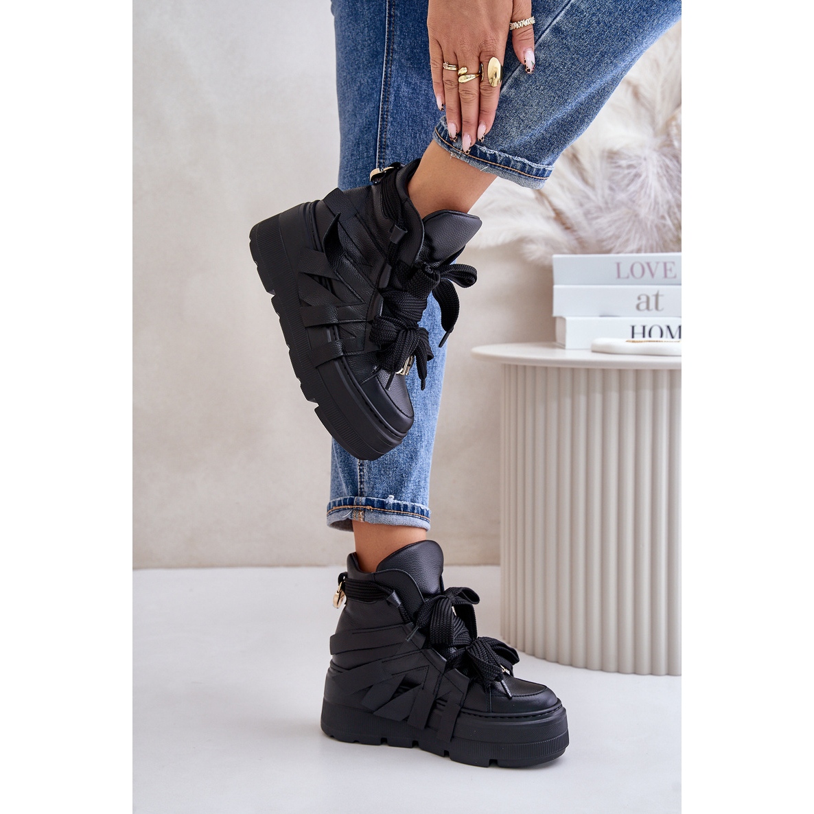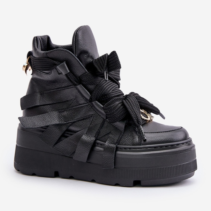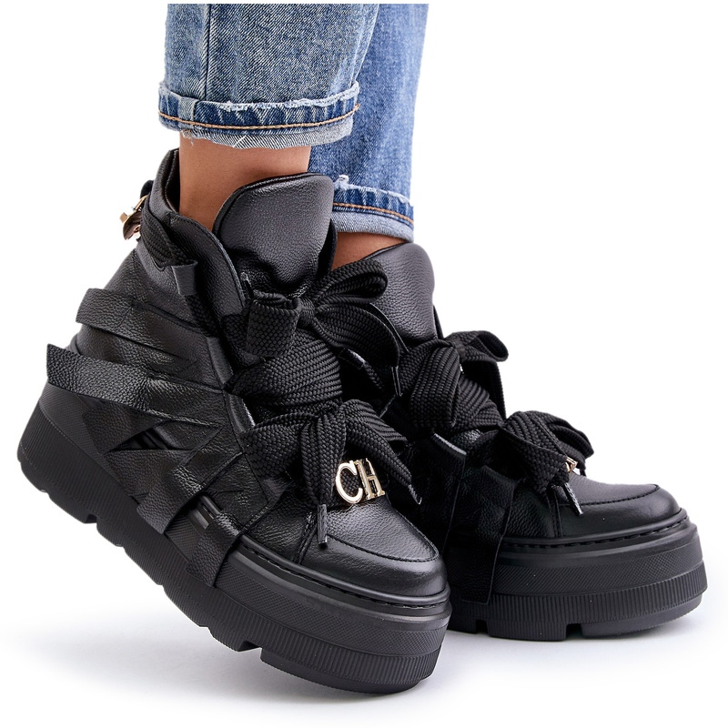 Baskets en cuir pour femmes sur une plateforme massive CheBello 4561 Noir
