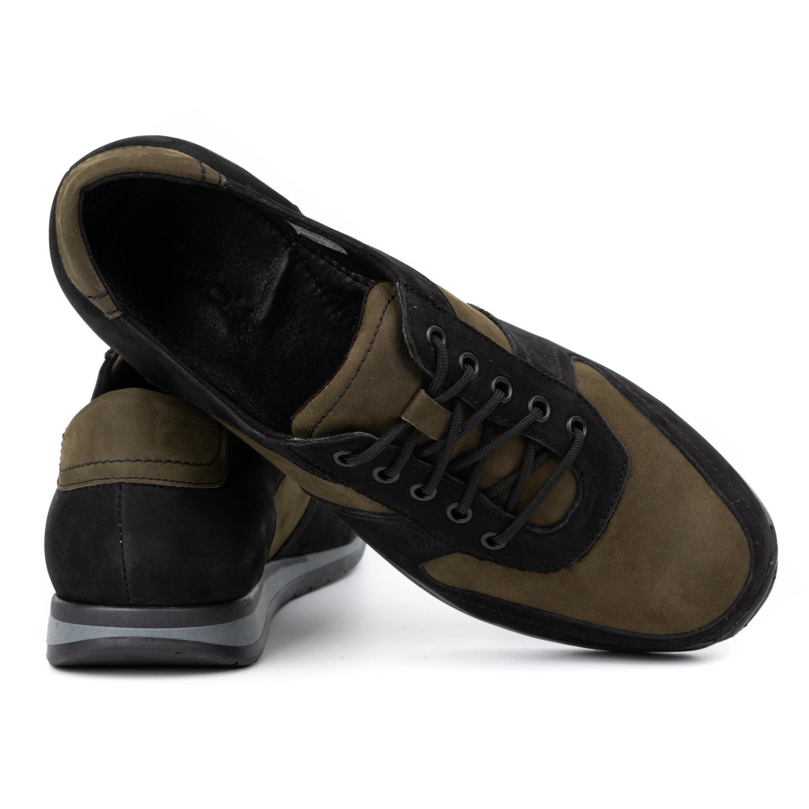 Détails: WASAK Baskets en cuir pour hommes 0234W, noires et vertes le noir