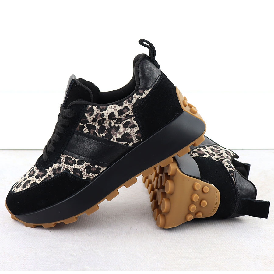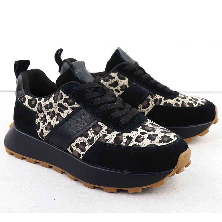 La couleur noire avec des accents léopard multi-colorants ajoute un peu de caractère, grâce à laquelle ces chaussures s'intègrent parfaitement dans les dernières tendances de la mode. La fixation en dentelle vous permet de correspondre parfaitement, ce qui en fait le choix parfait pour les sorties quotidiennes et les stylisations plus exigeantes.
