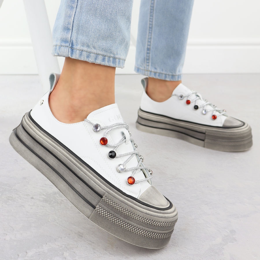 Les baskets en cuir sur la plate-forme White Goe NN2N4054 sont le choix parfait pour les femmes qui apprécient le confort combinées aux dernières tendances de la mode. Ces chaussures d'origine proviennent d'une collection Goe renommée, connue pour son excellent savoir-faire et son attention aux détails.