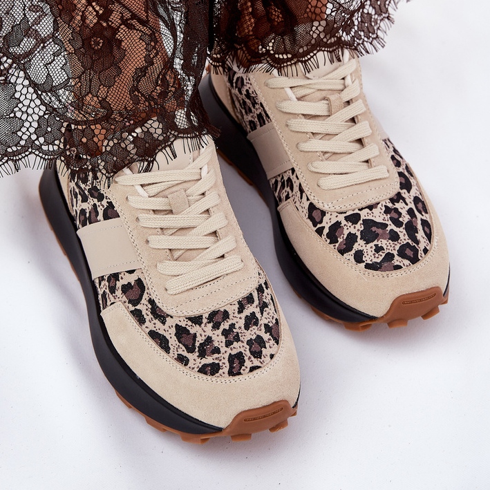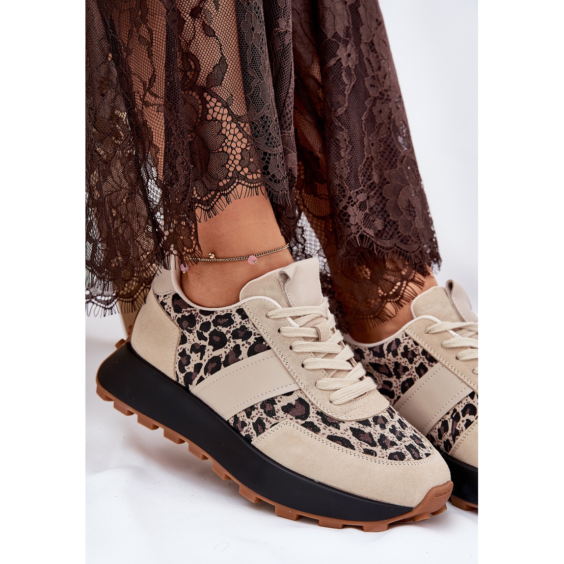 Détails: Baskets en daim féminin sur la plate-forme Leopard Vinceza 66793 beige
