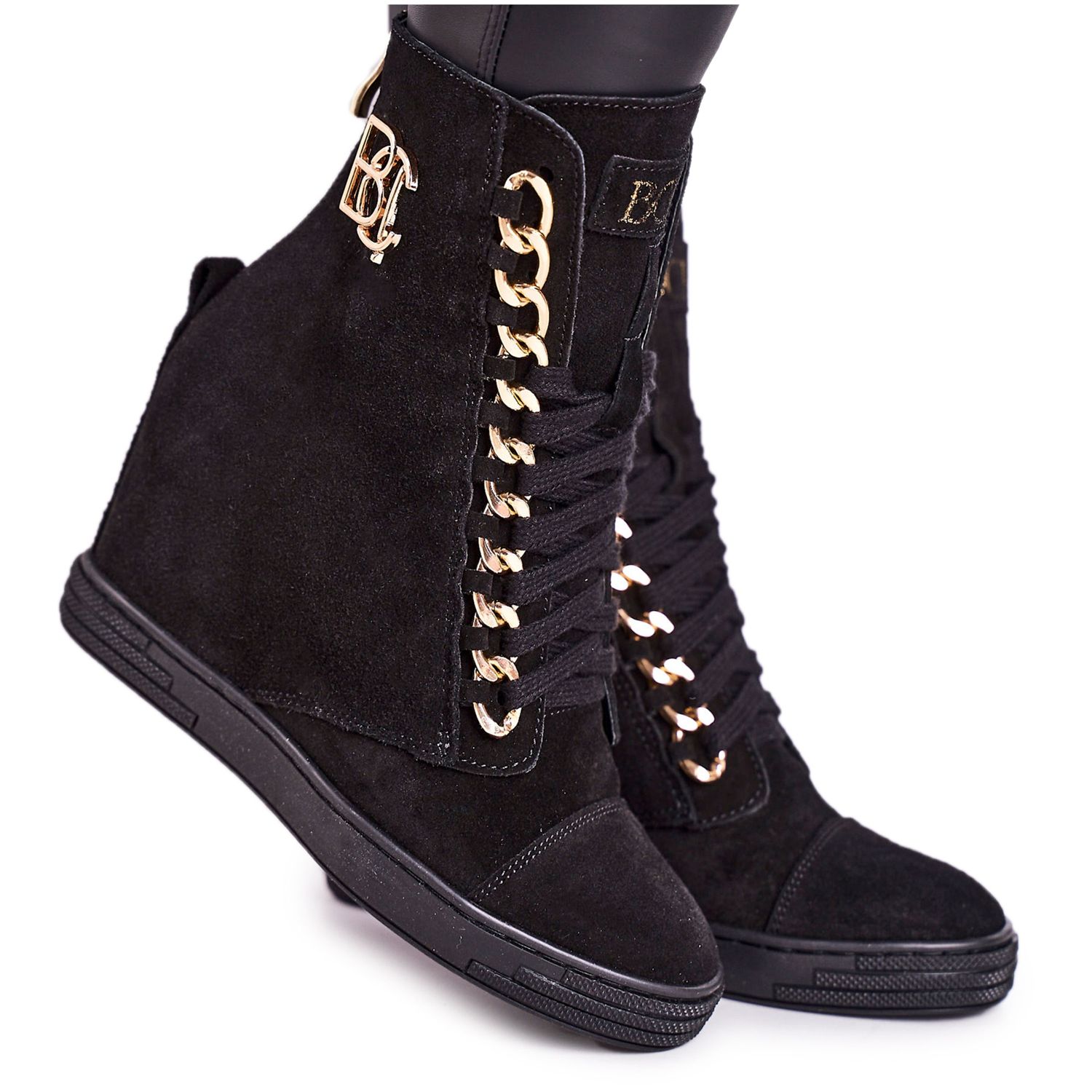 Baskets en daim pour femmes BOOCI 2222/066 / avec chaîne dorée Noir