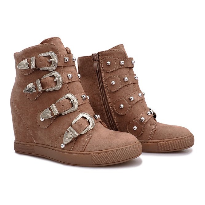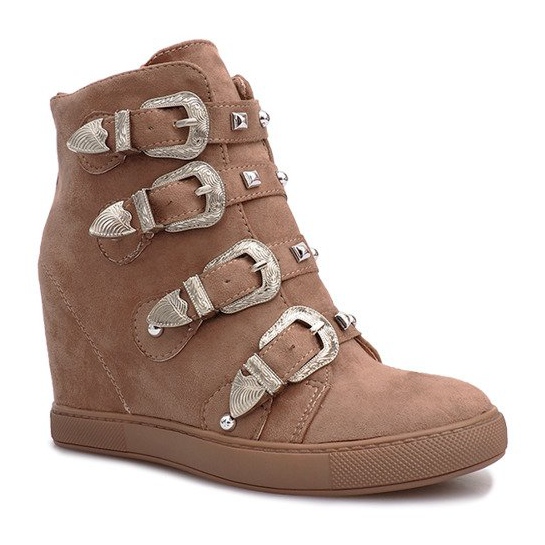 Les baskets à boucles sont équipées d'une fermeture éclair pratique, ce qui les rend faciles à enfiler et à enlever. Grâce à la cale cachée de 8 cm de hauteur, chaque promenade sera un plaisir et votre silhouette s'affinera. Les décorations en forme de clous délicats leur donnent du caractère, les rendant extrêmement élégantes et originales.