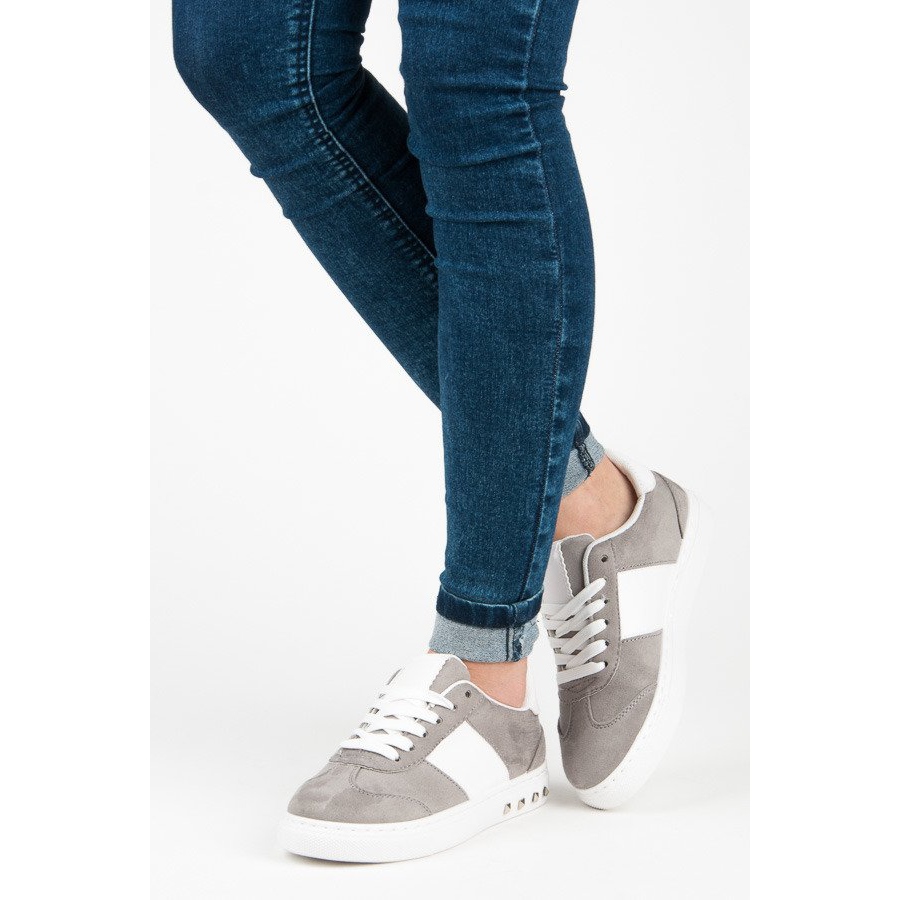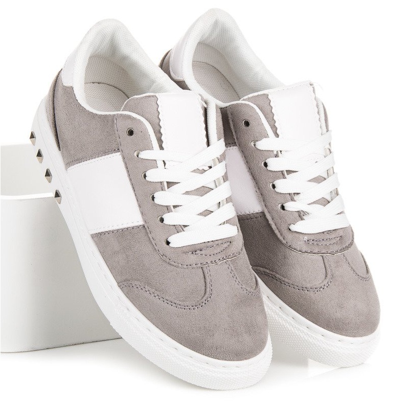 Les baskets ont une fermeture à lacets qui permet un ajustement parfait au pied, et la plateforme de 3 centimètres ajoute un rehaussement subtil sans sacrifier le confort. La couleur grise universelle rend ces chaussures faciles à combiner avec différents styles, et leur design minimaliste s'intègre parfaitement dans les tendances de la mode actuelles.