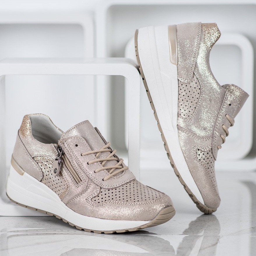 Pour toutes les femmes qui souhaitent ajouter un peu de brillance à leur image de tous les jours, Filippo propose des baskets dorées uniques avec un accent pailleté qui allient parfaitement le confort sportif à un design tendance original.