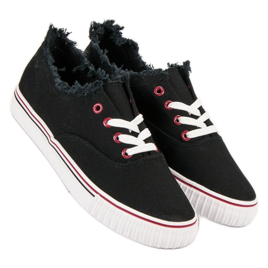 Les baskets en textile noires sont un élément irremplaçable de la garde-robe de chaque femme, alliant parfaitement style et confort. Ces chaussures minimalistes sont parfaites pour une variété de situations : des tâches quotidiennes au travail, en passant par les cours à l'université, jusqu'aux réunions entre amis. Leur couleur noire universelle leur permet de s'agencer à de nombreux styles, notamment avec un jean.