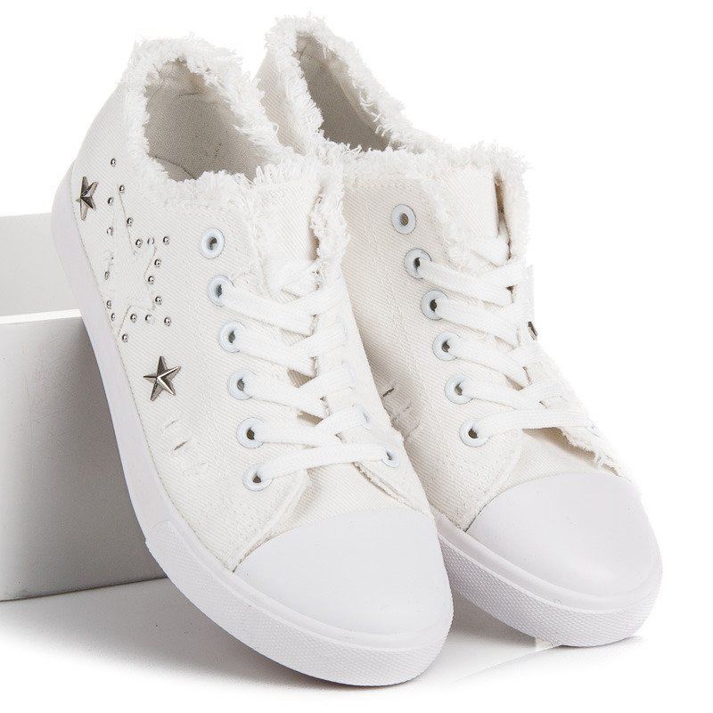 Découvrez l'élégance subtile des baskets en tissu blanc qui seront le complément parfait à n'importe quel style. Ces chaussures uniques se caractérisent par une teinte neigeuse et une finition unique autour de la cheville, ce qui leur confère un charme girly. Les décorations sous forme de points et d'étoiles délicats font ressortir les baskets tout en conservant un style minimaliste.