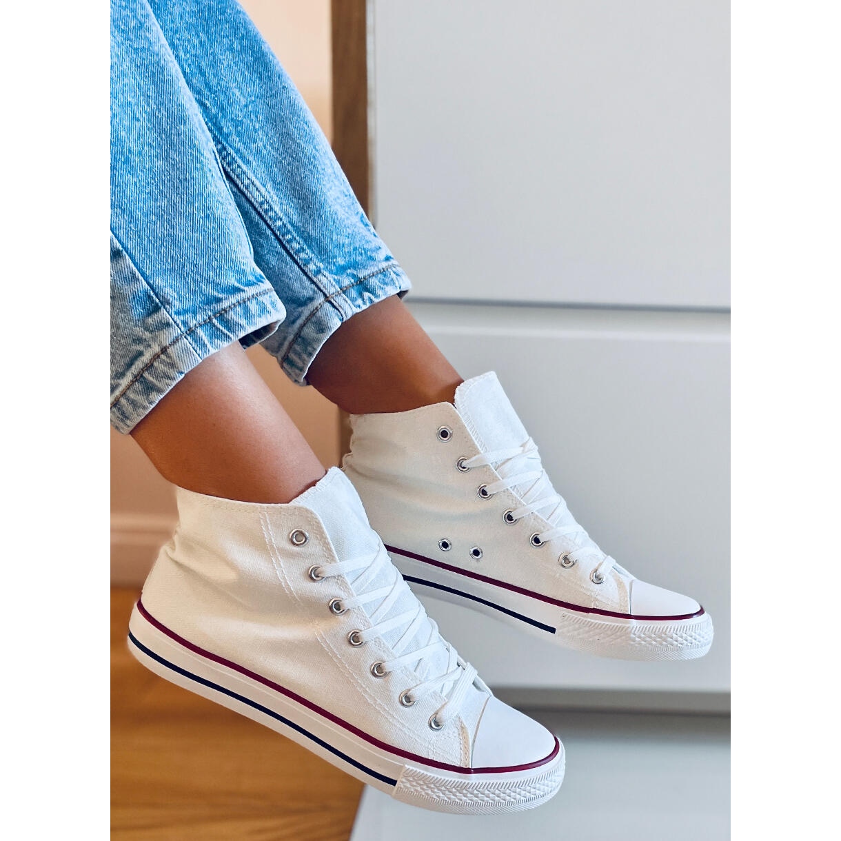 Nous vous présentons les baskets montantes en toile Jude White dans une couleur blanche classique, qui devraient figurer dans la garde-robe de chaque femme. Ces chaussures intemporelles allient design tendance et confort, ce qui en fait le choix parfait pour un usage quotidien.