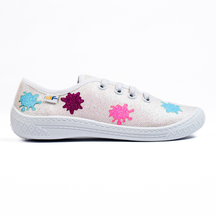 Détails: SHELOVET Baskets enfant 3F blanches brillantes à enfiler multicolore