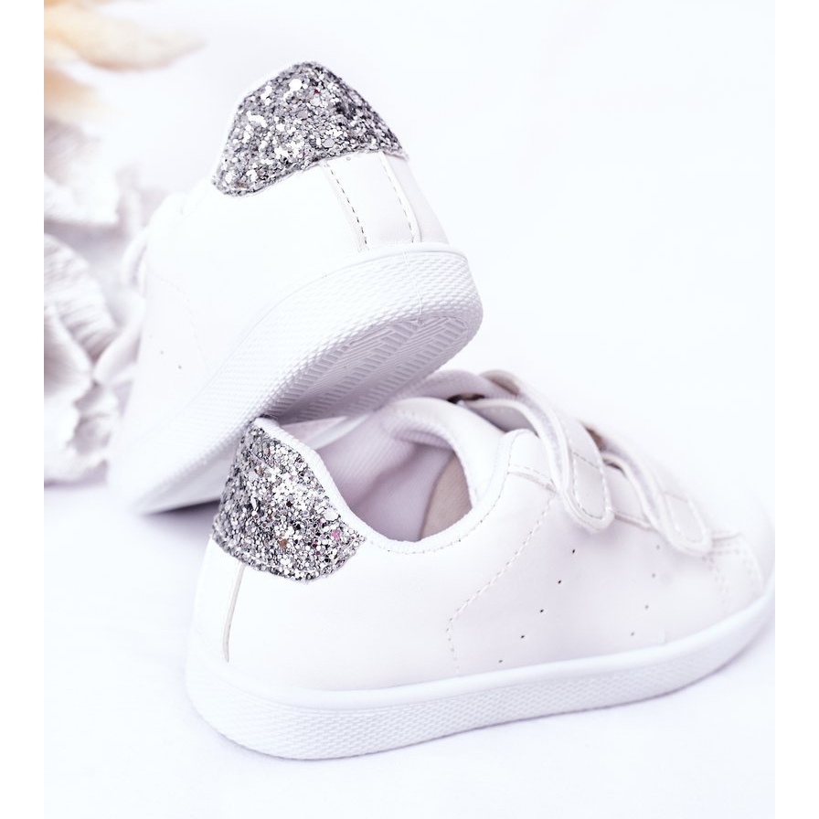 Détails: Baskets Enfant Avec Velcro Blanc et Argent Cute Girl blanche