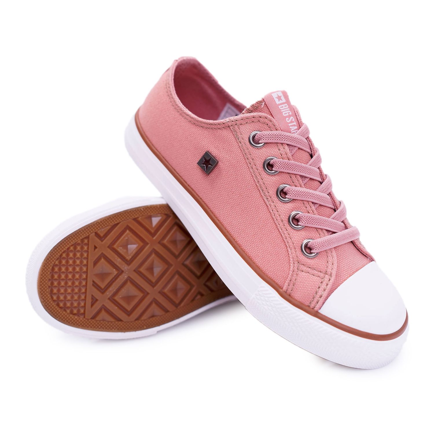 Les baskets Big Star se ferment avec des lacets, ce qui permet un ajustement parfait au pied de l'enfant. Une tige de 5 cm de haut et une plateforme de 2 cm d'épaisseur rendent les chaussures non seulement confortables, mais aussi à la mode.