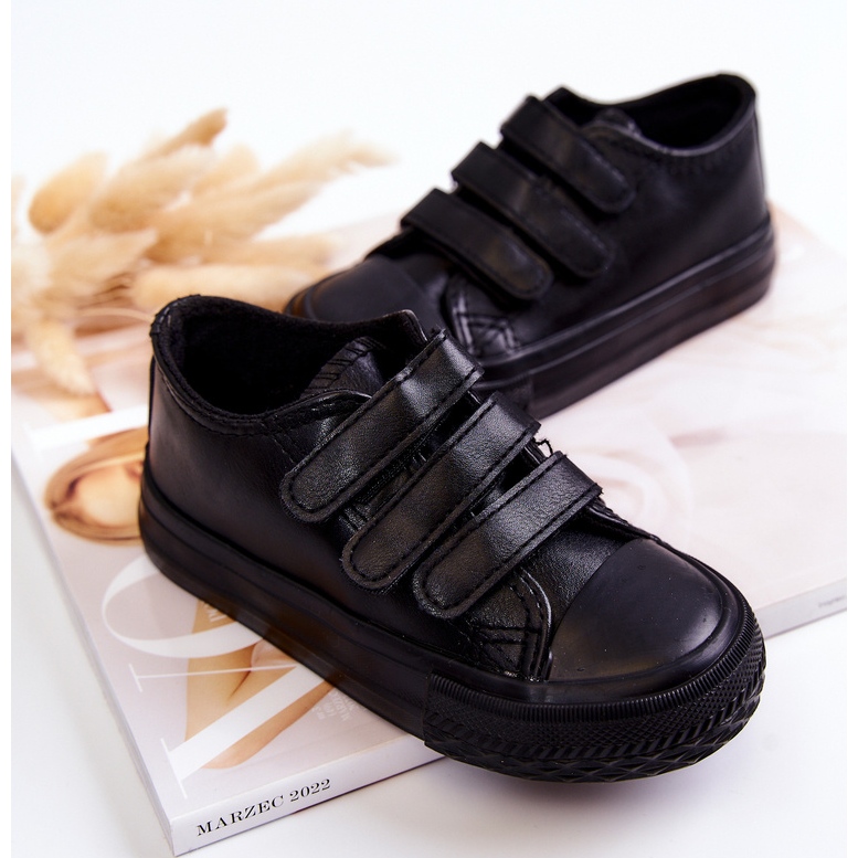 Détails: Baskets Enfant Cuir Baskets Avec Velcro Noir Foster le noir