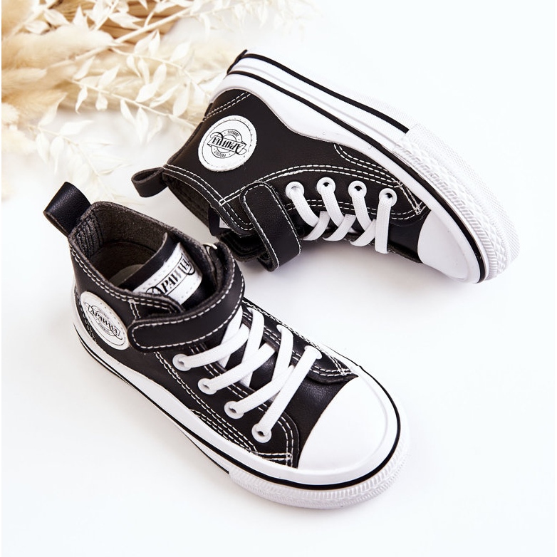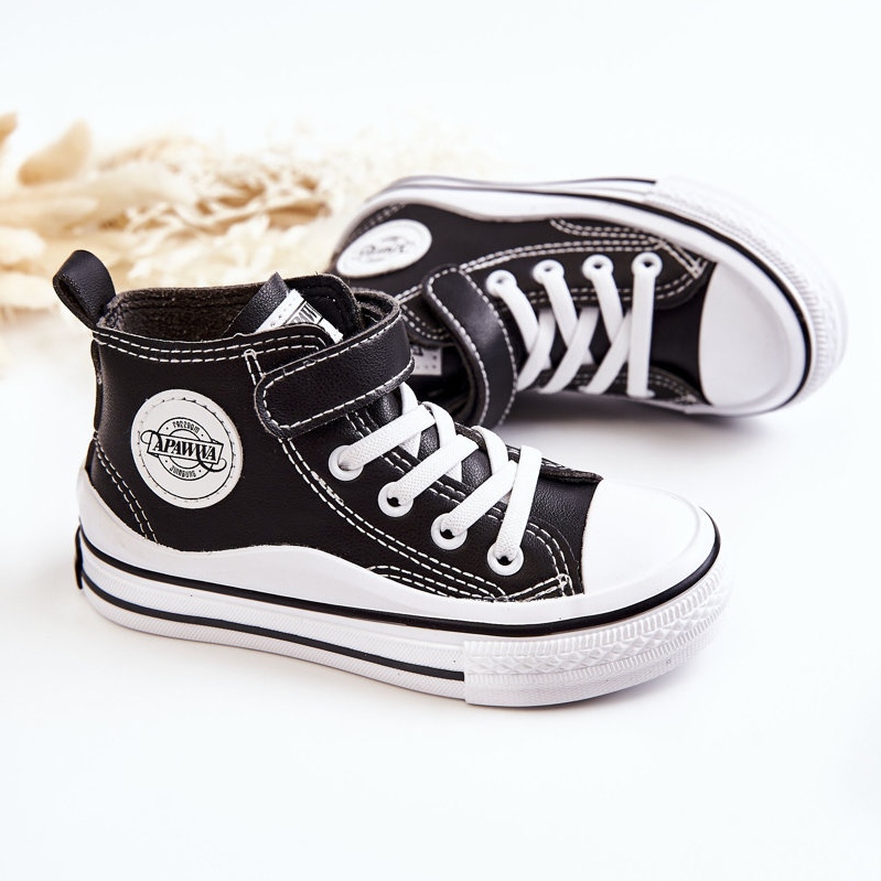 Inna marka Baskets Enfant En Cuir Avec Velcro Noir Bruni le noir