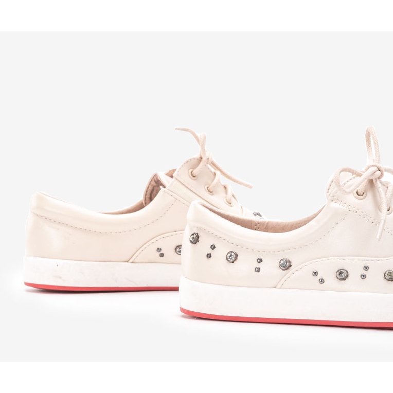 Les baskets Fosses beiges se caractérisent par une fermeture à lacets qui permet de les ajuster avec précision au pied. La hauteur des chaussures est de 7 cm et le talon de 2 cm, ce qui les rend stables lors de la marche. De plus, un contrefort de talon rigide soutient la jambe, offrant encore plus de confort.