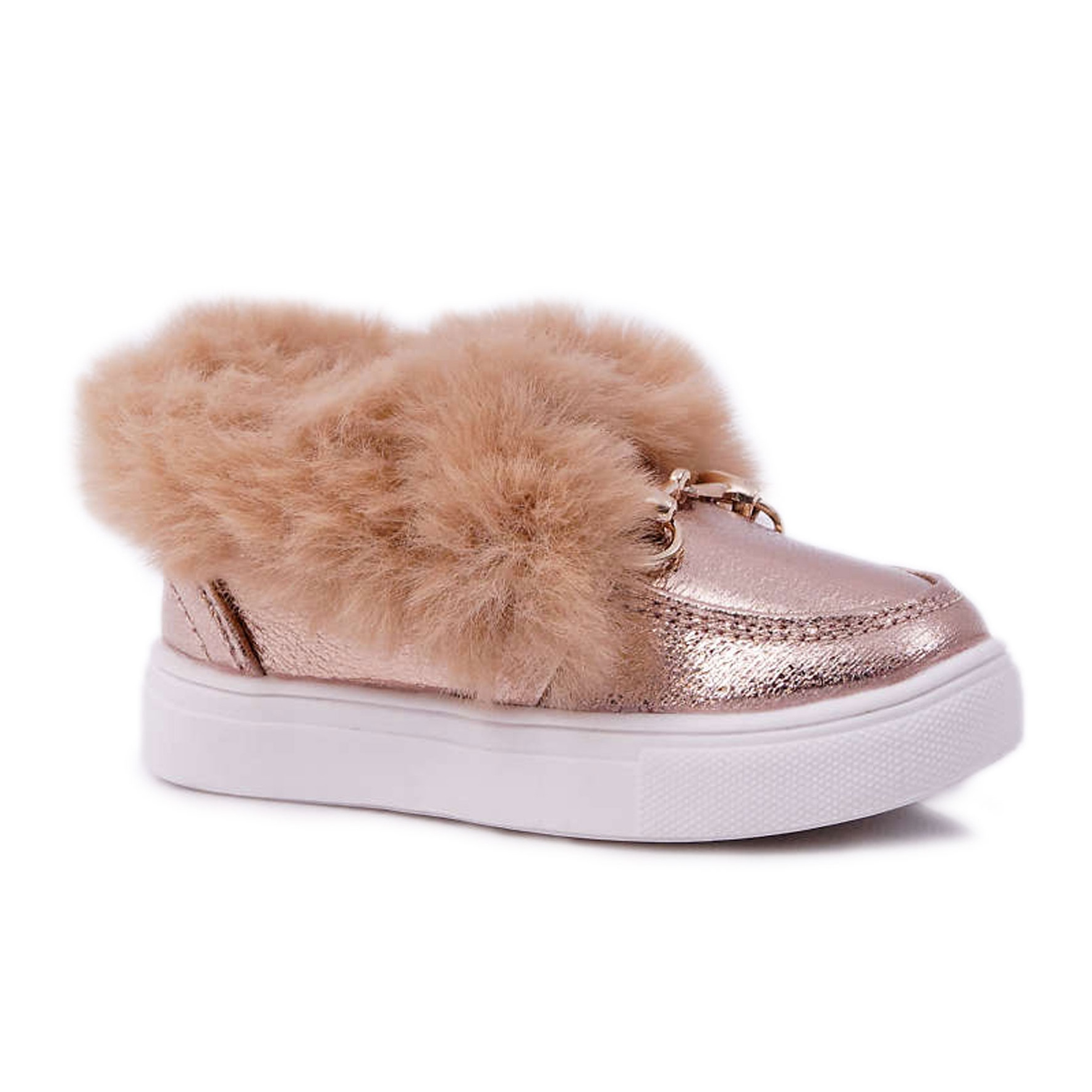 **Baskets Isolées Enfant Avec Fourrure Champagne Grendy Or**