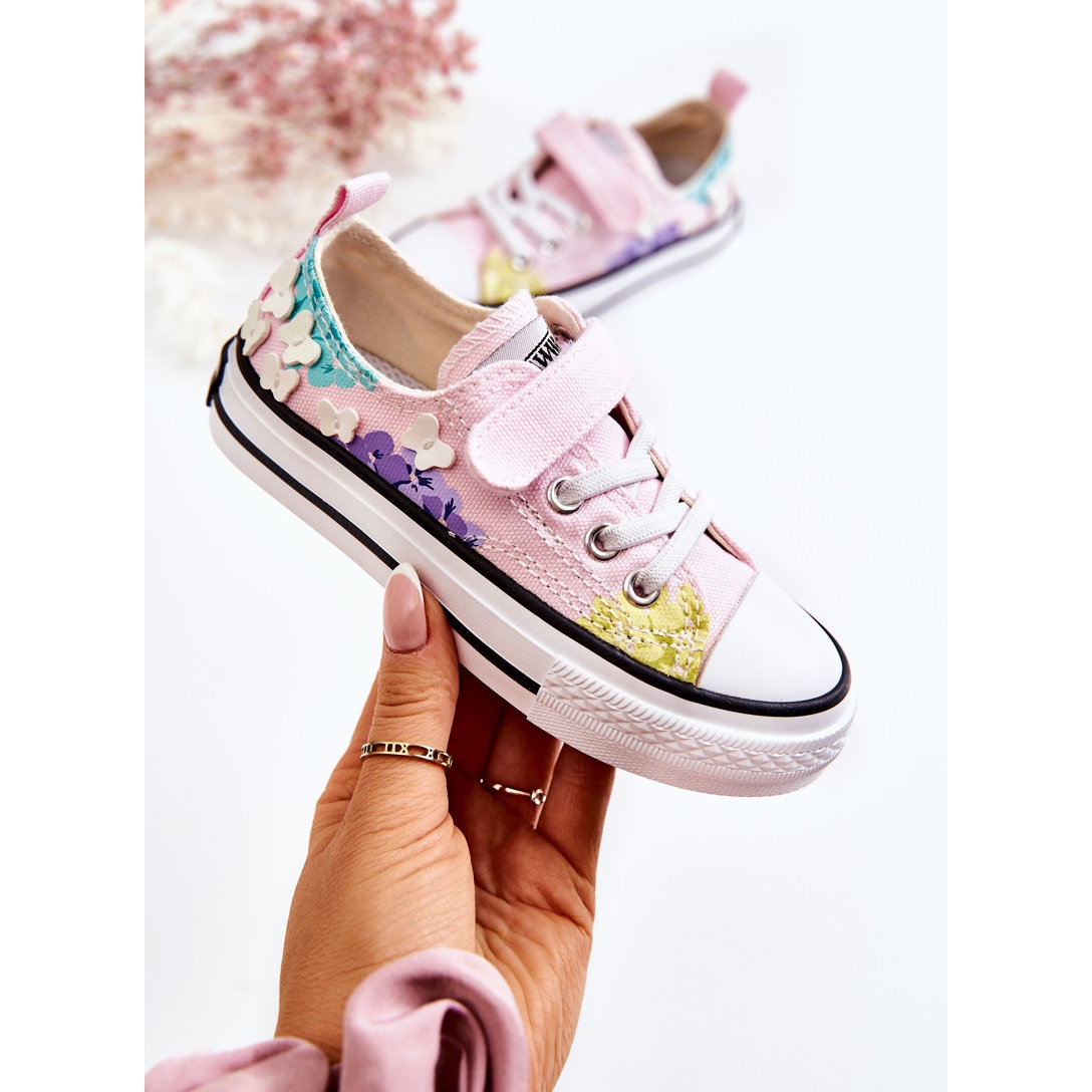 Un magnifique motif et des papillons cousus sur le côté de la tige permettent à ces baskets de se démarquer des autres. Les bandes élastiques imitant les lacets leur confèrent un caractère sportif, et la semelle intérieure en tissu doux et amovible garantit un confort de port tout au long de la journée. Les baskets disposent également d'un talon légèrement raidi et d'une semelle antidérapante en caoutchouc, qui assure la sécurité pendant le jeu.