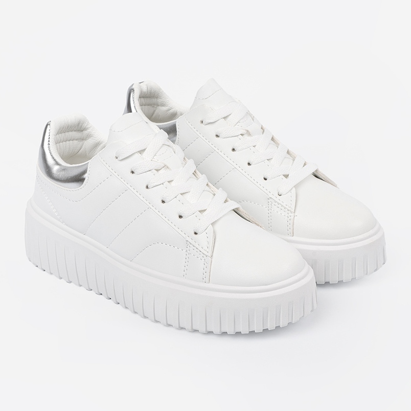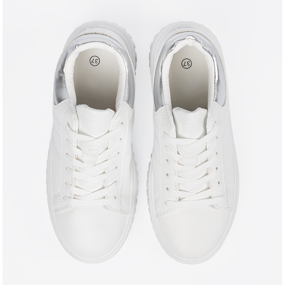 Nous présentons des baskets féminines blanches de la marque Shelvt, qui combinent un style sportif avec des accents à la mode. Ces chaussures uniques se distinguent par des inserts en argent qui leur donnent un personnage moderne, parfait au quotidien et pour des occasions moins formelles.