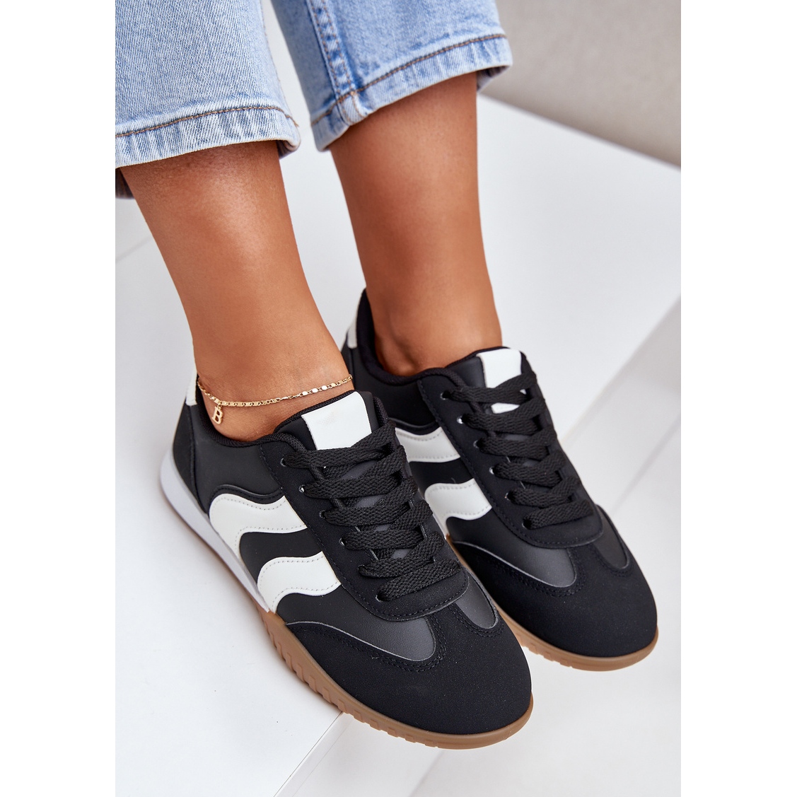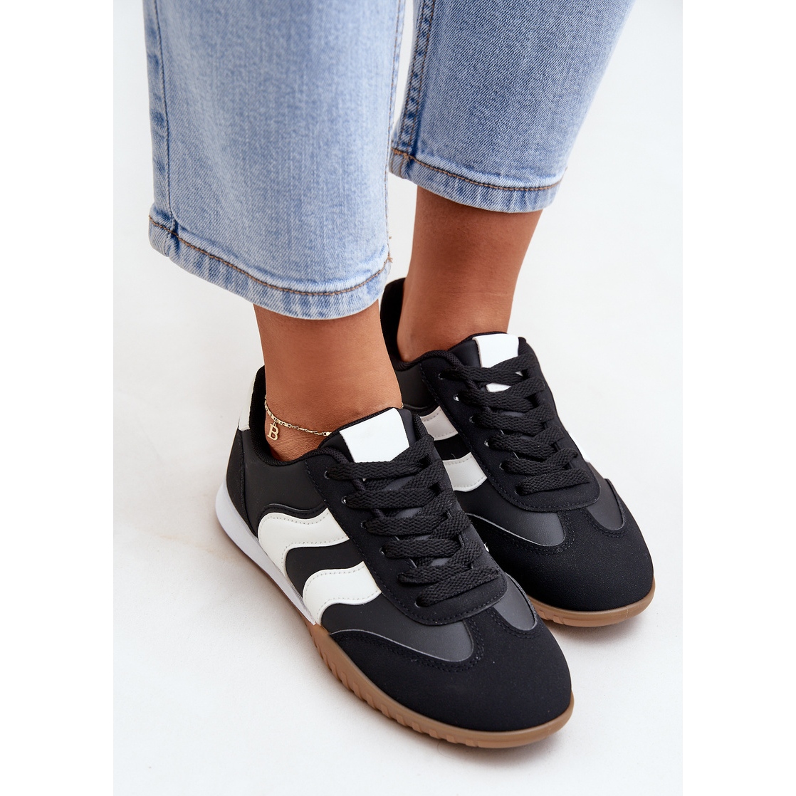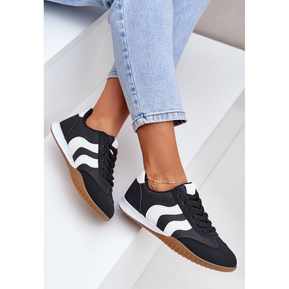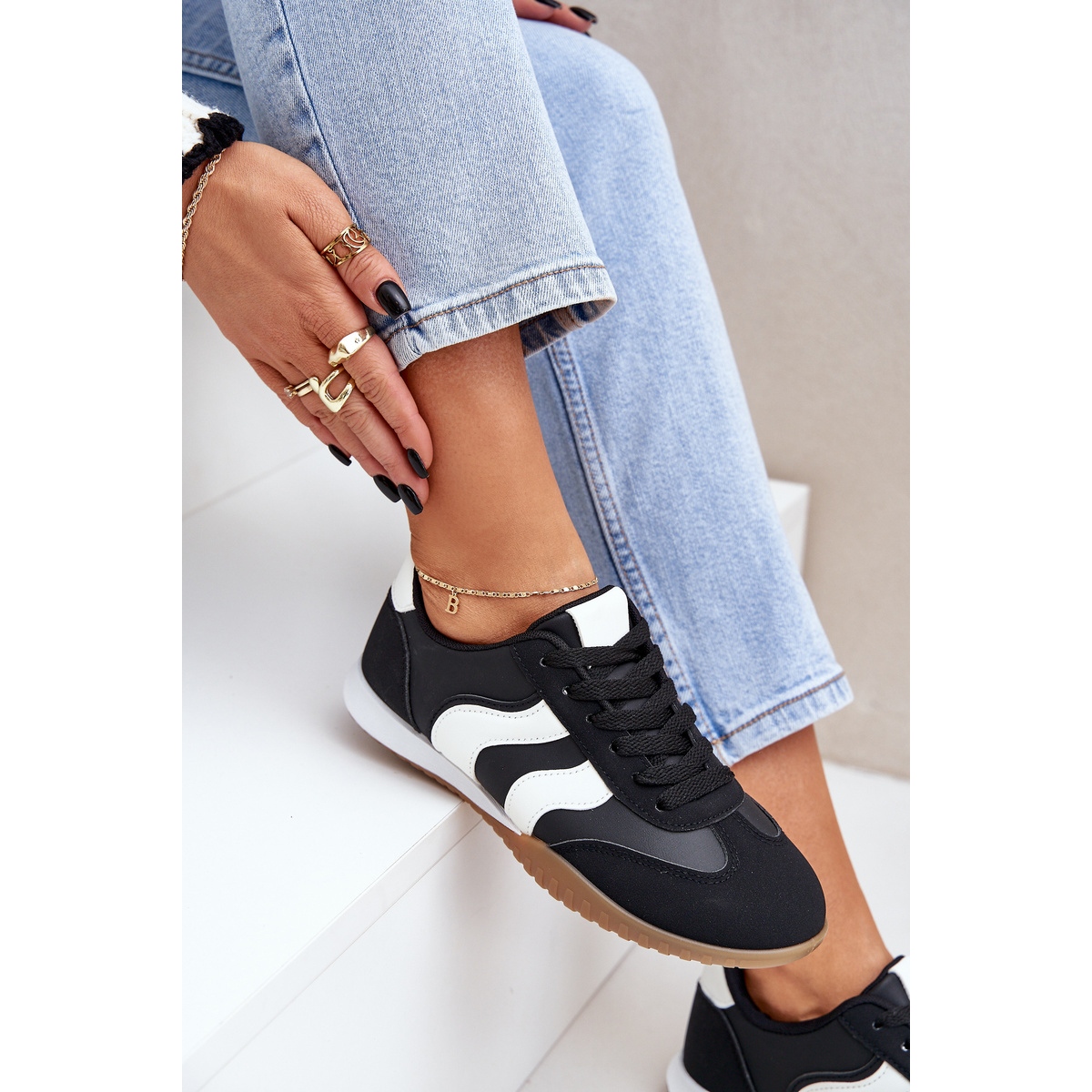 Découvrez l'élégance combinée à un confort grâce aux baskets féminines classiques avec du cuir écologique dans une belle couleur noire. Ces chaussures élégantes et basses sont le choix parfait pour les femmes qui apprécient un look à la mode chaque jour. Le nez arrondi et le laçage traditionnel leur donnent un personnage universel, grâce à laquelle ils se mélangent bien avec des stylisations décontractées et légèrement plus élégantes.