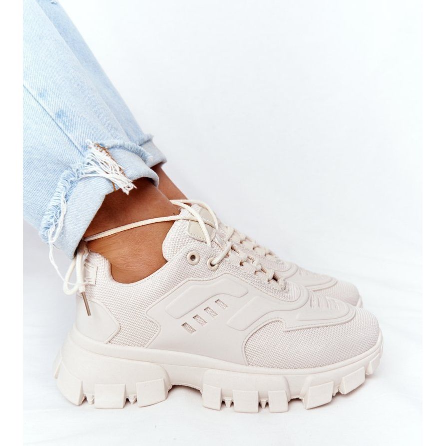 Détails: Baskets Femme Beige New York Sur Grande Semelle