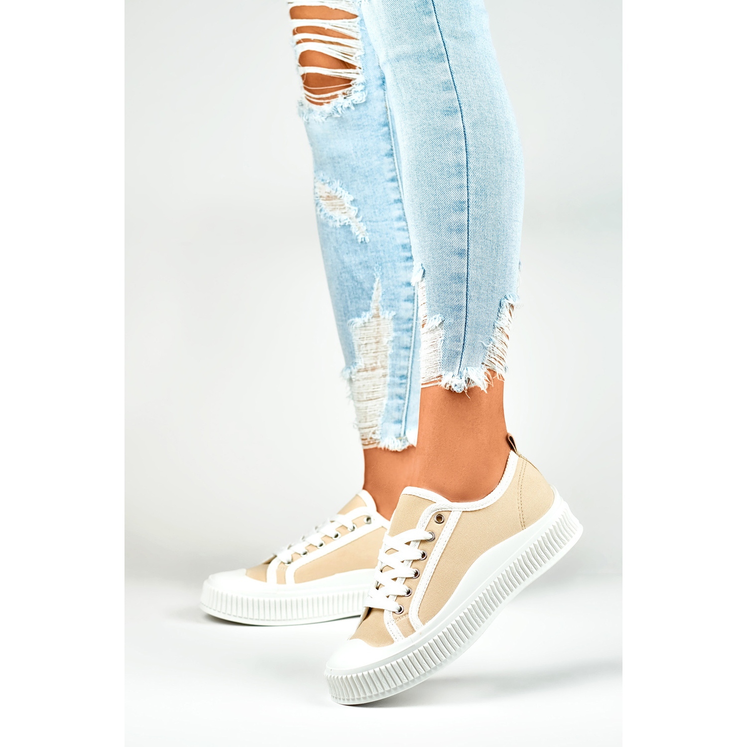 Baskets féminines beige avec une semelle blanche - modèle beige