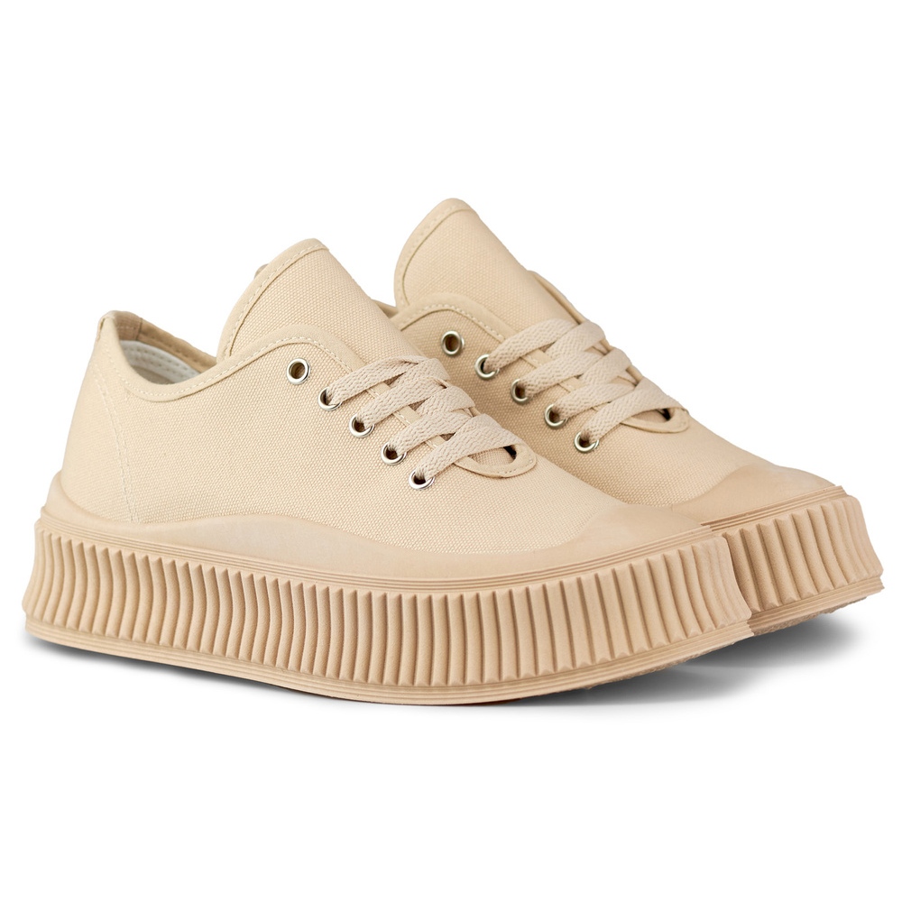 Nous vous présentons des baskets beiges pour femmes à semelle épaisse, qui sont le choix parfait pour toute occasion. Fabriqués en matière textile de haute qualité, ils offrent un excellent confort et un look élégant.