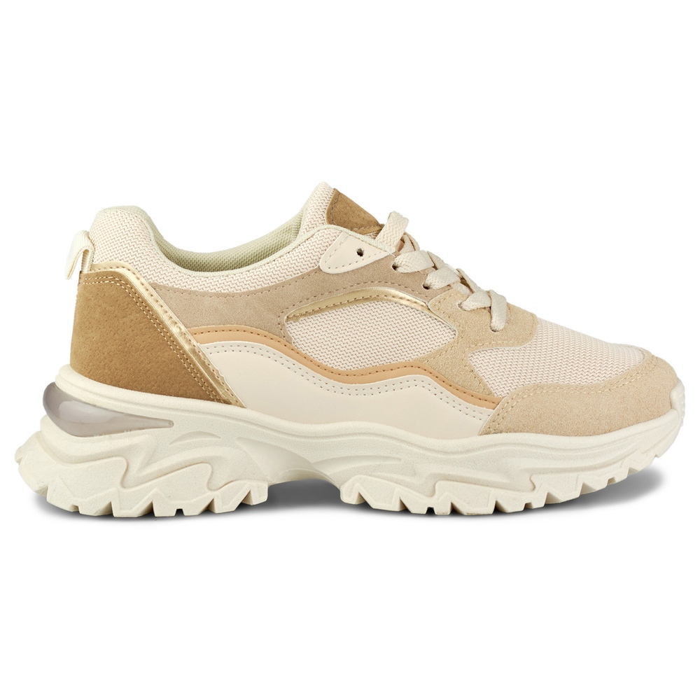 Baskets féminines beige sur une semelle blanche - coupe universelle et plate-forme confortable