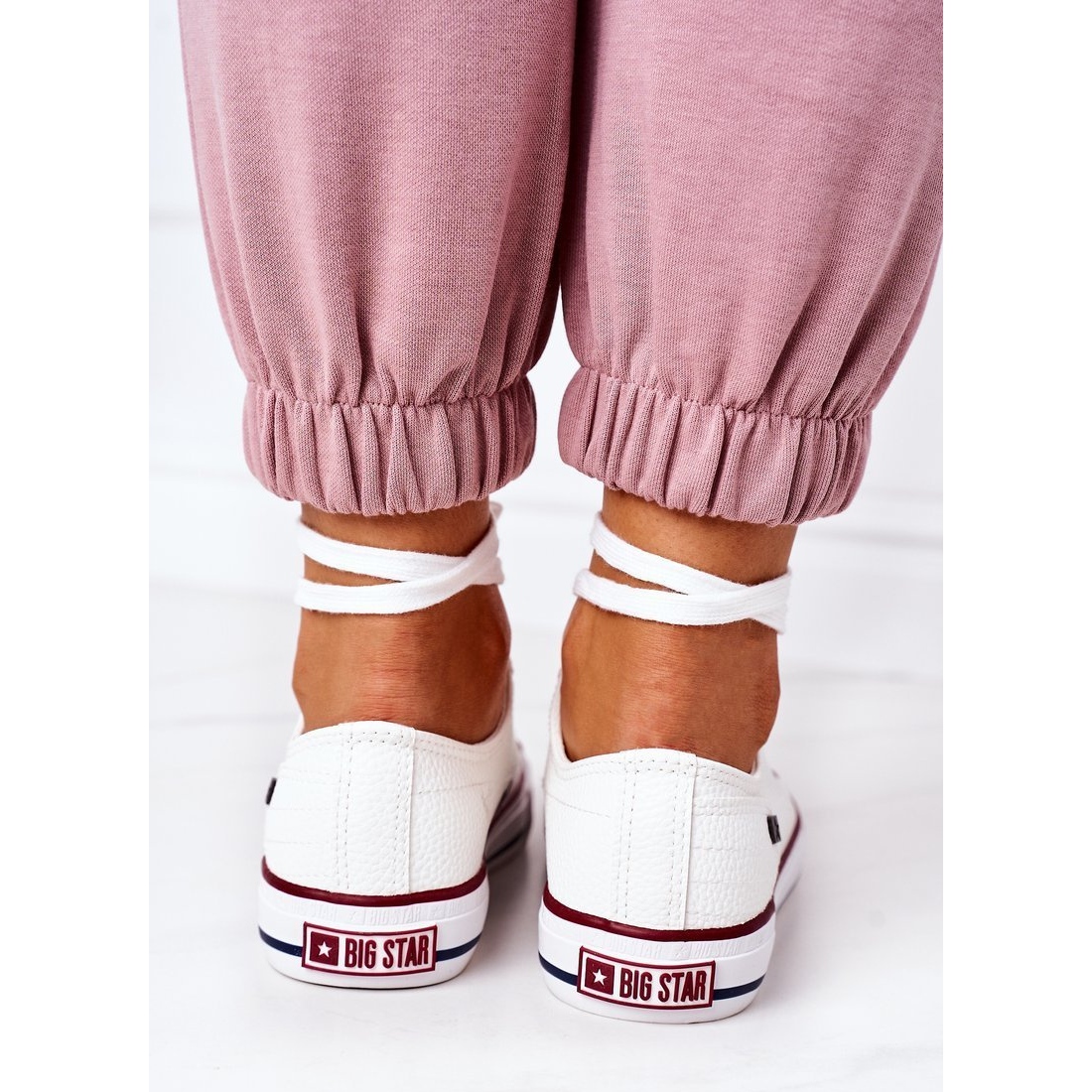 Les baskets féminines classiques et universelles de la marque Big Star polonaise. Fabriqué en cuir écologique de haute qualité, avec une coupe simple et intemporelle - ils s'adaptent parfaitement aux stylisations quotidiennes et plus décontractées. L'insert de matériau doux offre un confort tout au long de la journée, et la semelle synthétique légère ajoute de la stabilité.