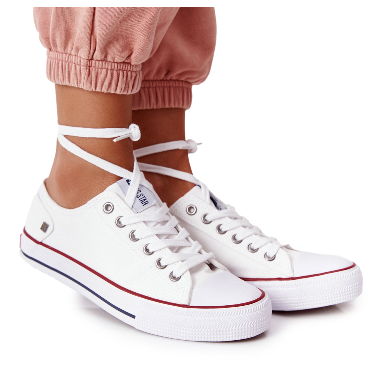Des baskets classiques et low oldschool - un modèle inspiré des styles emblématiques des années 70, qui apprécient la popularité inébranlable depuis des années. Un tissu blanc en dentelle avec un orteil en caoutchouc caractéristique donne un aspect intemporel, tout en réconfortant tous les jours. La seule seule seule folie décorée du logo Big Star fournit une certaine étape à la fois dans des conditions urbaines et pendant les week-ends.