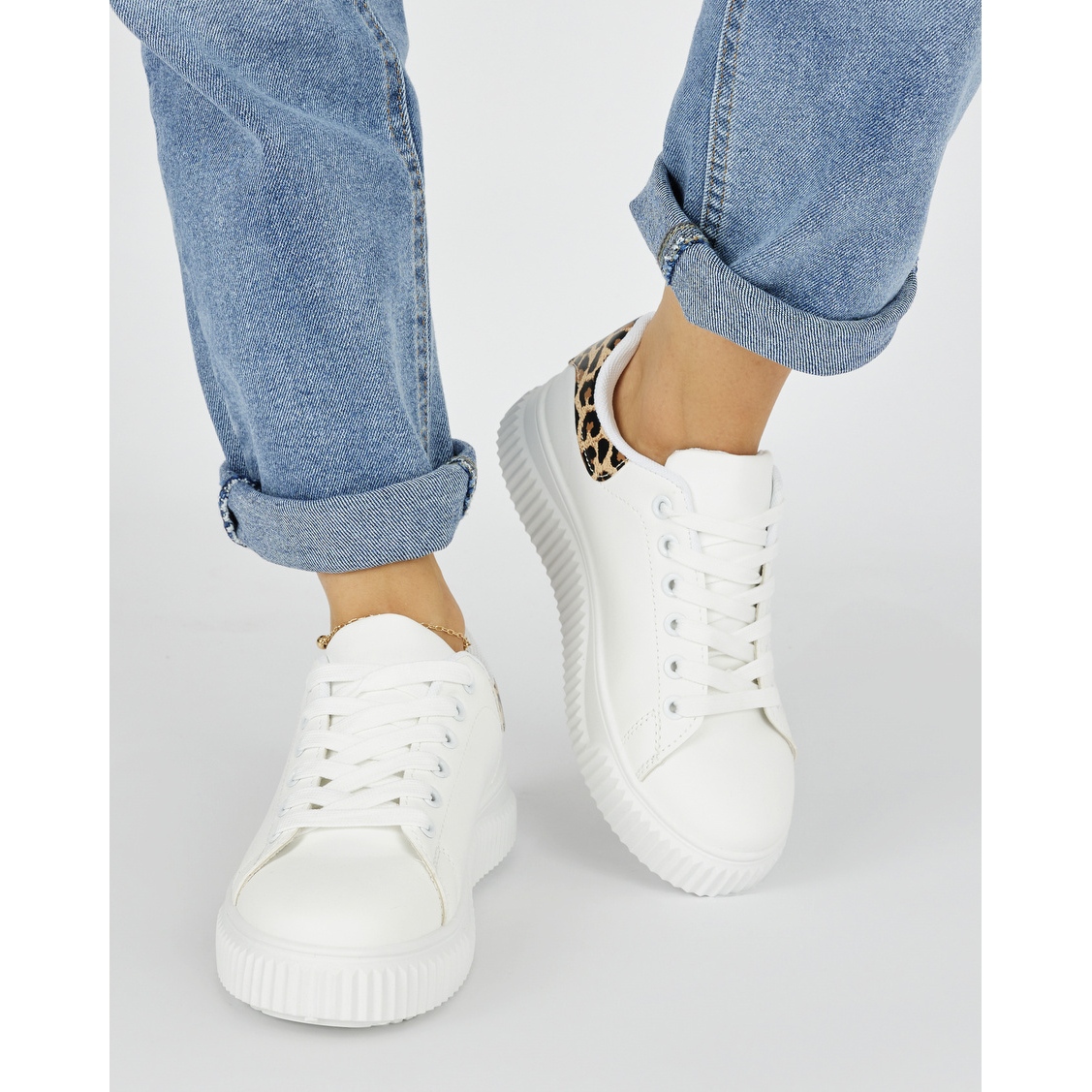 Détails: Baskets femme blanches avec élément imprimé léopard