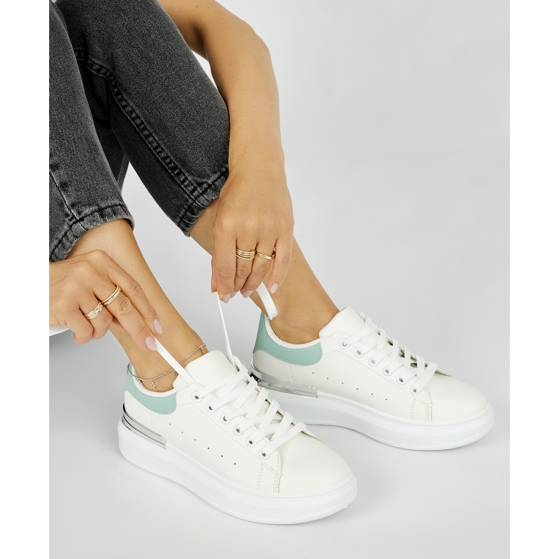 Fermées dans une boîte originale, les baskets blanches avec un accent vert sont un incontournable dans la garde-robe de toutes les femmes à la mode. Choisissez-les pour ajouter à votre style de style sportif et de confort, que vous apprécierez certainement lors des défis quotidiens.