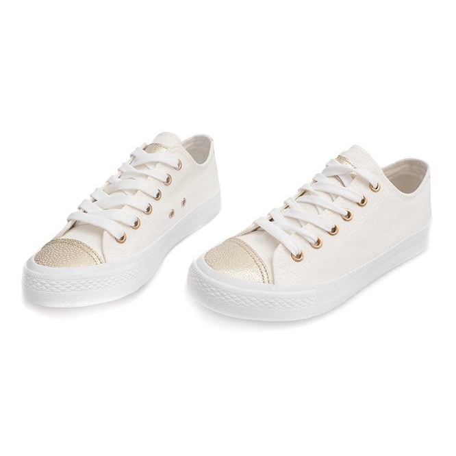 Les chaussures sont disponibles en blanc discret avec des accents jaunes et dorés, ce qui ajoute de la fraîcheur et un look extrêmement attrayant. Aucune décoration supplémentaire ne détourne l'attention de l'élégance minimaliste de ce modèle, ce qui le rend parfaitement adapté aux dernières tendances de la mode.