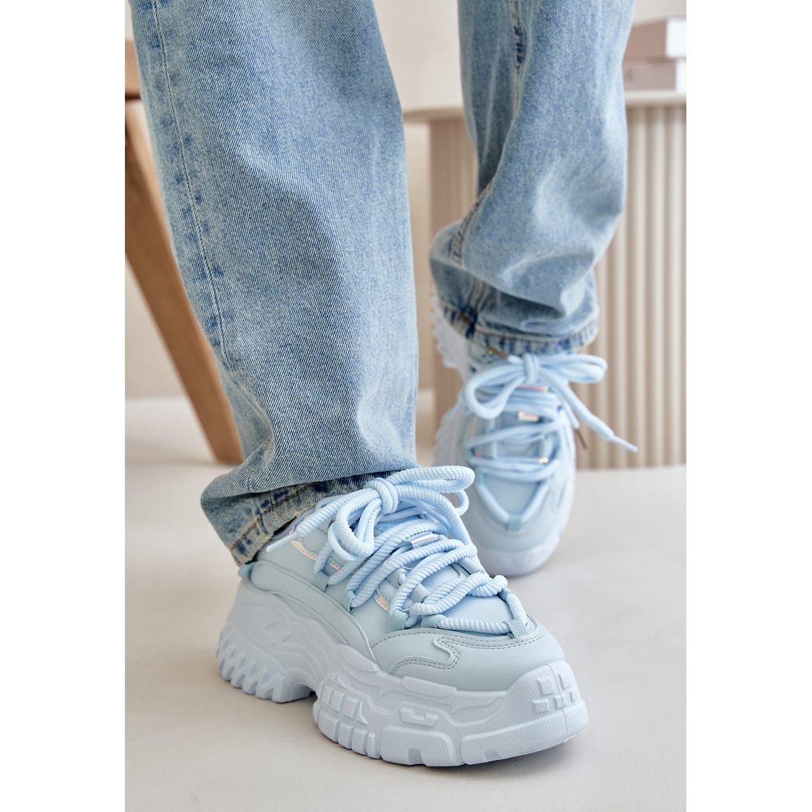 Les baskets pour femmes sur la semelle bleue massive Nevela sont la combinaison parfaite de design à la mode et de confort. Ces chaussures élégantes intégrées sur une semelle de plate-forme solide de 6 cm se distinguent non seulement en apparence, mais aussi avec des fonctionnalités. L'insert en mousse amovible garantit le confort toute la journée, ce qui en fait un choix parfait pour les sorties quotidiennes et les stylisations plus décontractées.