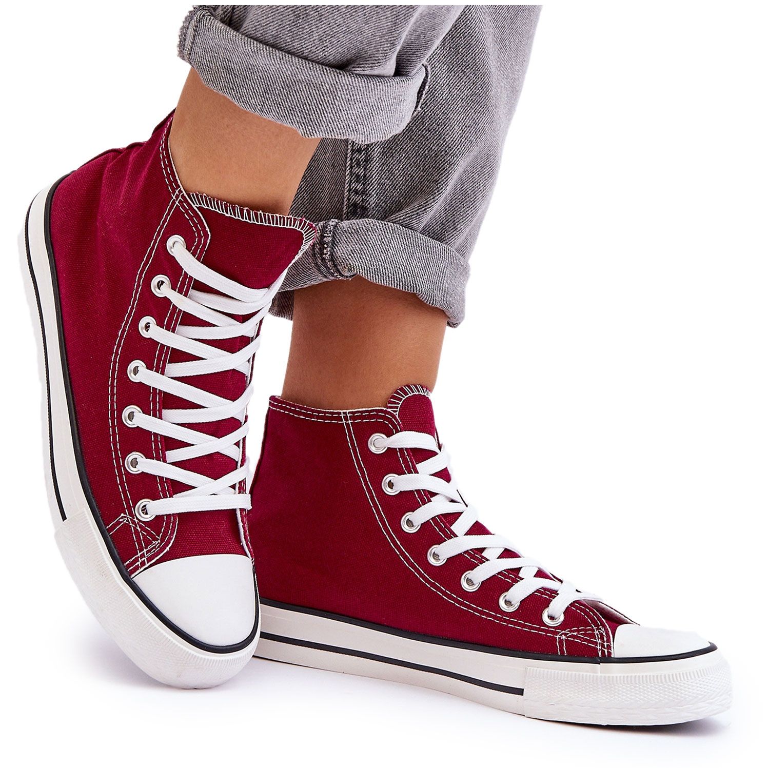 Les baskets classiques féminines du FR1 "Wine" - Bourgogne, baskets de cheville intemporelles, combinant une forme simple avec la commodité de l'utilisation quotidienne. Fabriqué en matériau textile, avec un renforcement en caoutchouc du nez et une semelle sans glissement, fonctionnera au cours des saisons printemps / été / automne.
