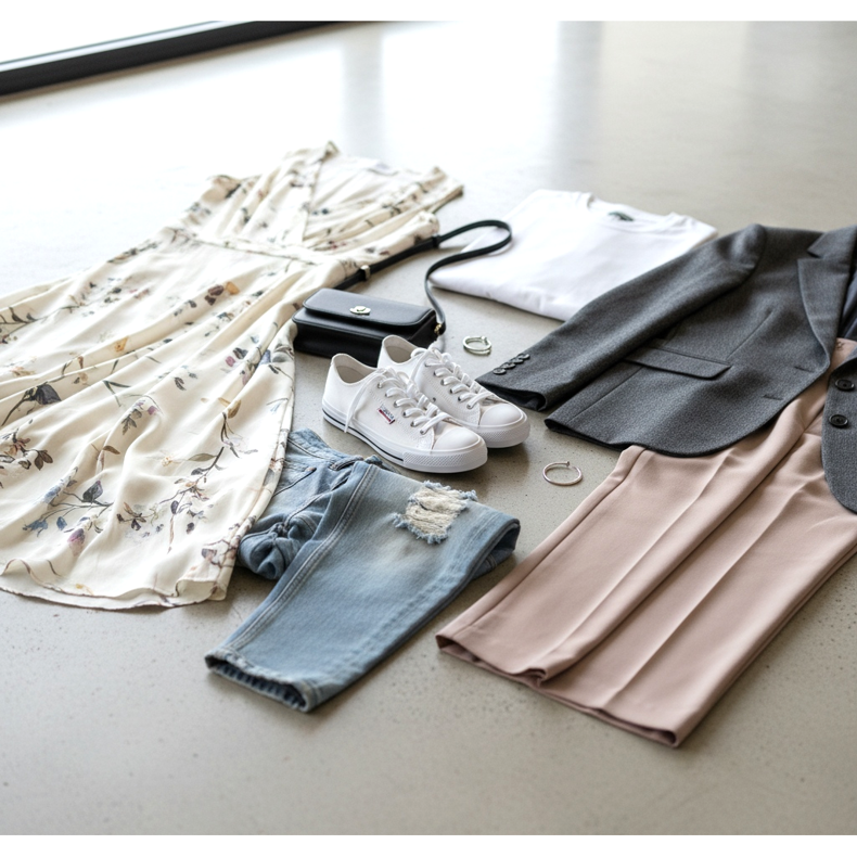 Pour le bureau, dans un dress code décontracté du vendredi : des baskets blanches avec un pantalon cigarette et une veste structurée créent le look smart-casual parfait. Pour une promenade : jean large rose et beige ou classique jusqu'aux chevilles, t-shirt blanc et baskets blanches - simples, épurées, efficaces.