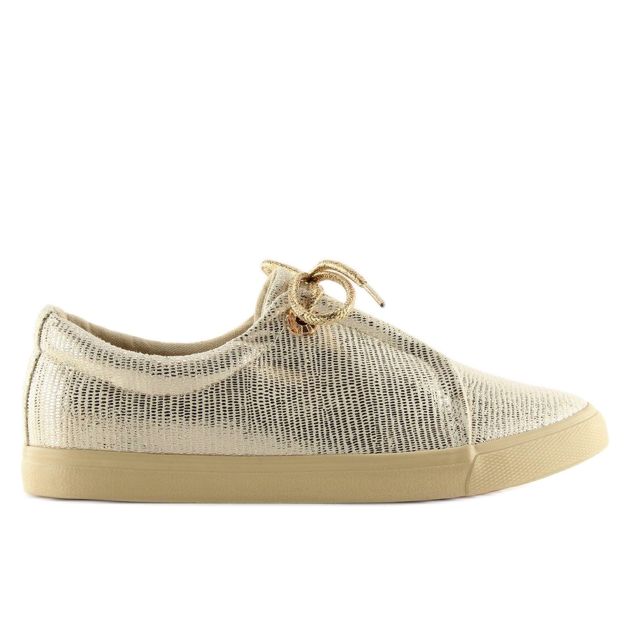 La couleur dorée et l'effet métallisé font de ce modèle un véritable accroche-regard, faisant de vous la star de chaque événement. Les talons bas et plats de 2 cm rendent ces baskets parfaites pour un usage quotidien, et le bout rond ajoute légèreté et élégance. La fermeture à lacets permet un ajustement facile au pied, ce qui garantit un confort d'utilisation tout au long de la journée.