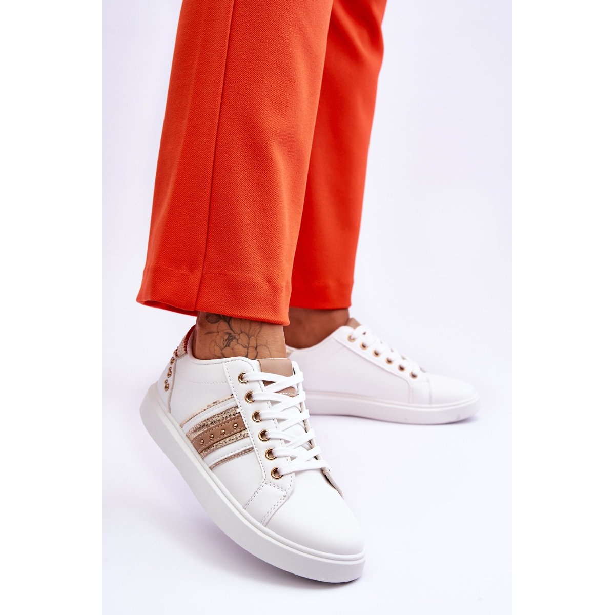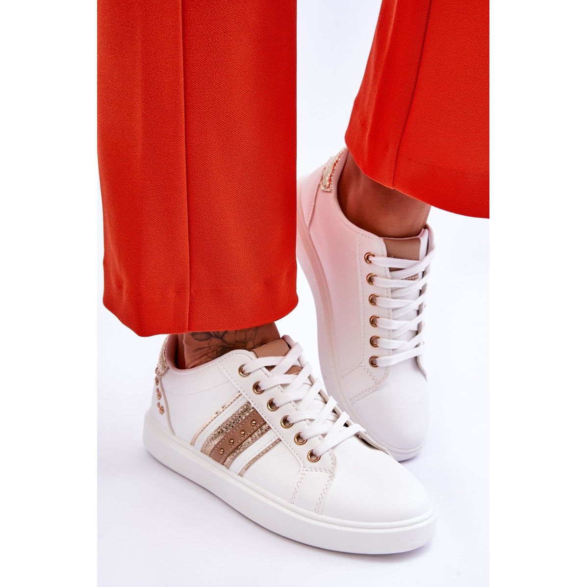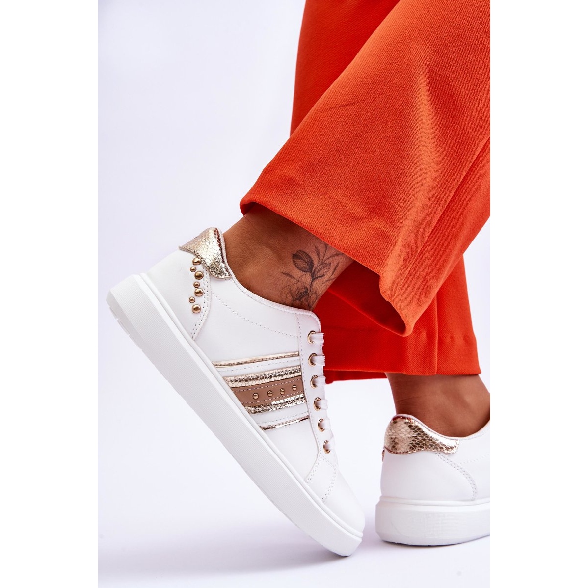 Inna marka Baskets Femme En Cuir Avec Clous Blanc Et Doré Dory blanche