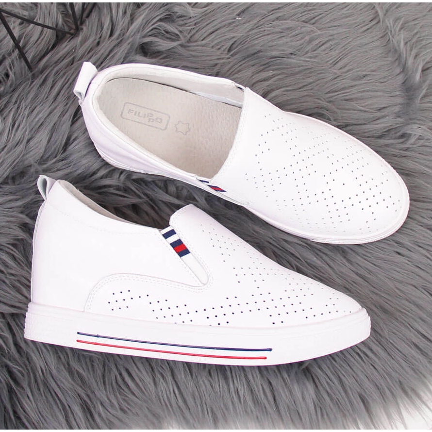 Filippo Baskets femme en cuir sur semelle compensée ajourée blanche Filippo