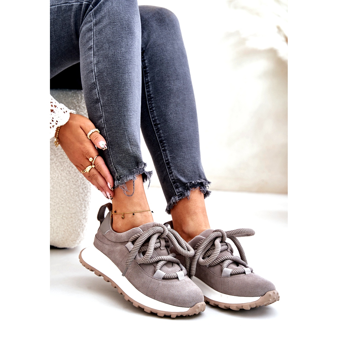 Détails: Baskets Femme En Daim Avec Laçage Épais Artiker 54C1465 Gris